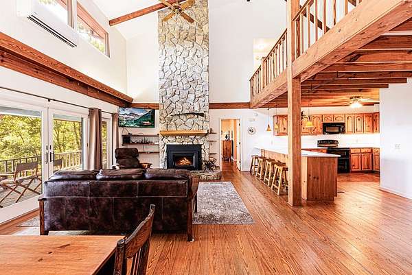 Enjoy rare end-of-the-road privacy with serene surroundings and panoramic mountain and lake views. This approximately 2,500 sq ft home offers two bonus rooms, a main-level study, and nearly 790 sq ft of covered porch space for easy indoor-outdoor living. Notable upgrades include Andersen double-pane windows, quartz countertops, a new dishwasher (2023), six mini-split heat pumps (2022), and a 20 kW whole-house propane generator. Spanning over two acres across three parcels, the property offers family compound potential with a 0.64-acre lot featuring an approximately 1,000-ft well and installed septic system, plus a 0.3-acre lot. Additional features include an approximately 300 sq ft garage/workshop. Located in an upscale gated community with excellent Verizon cell service and well-maintained systems, this property is ideal as a primary residence, second home, vacation rental, or private retreat. Schedule your private showing today! See attached information sheet for full details.