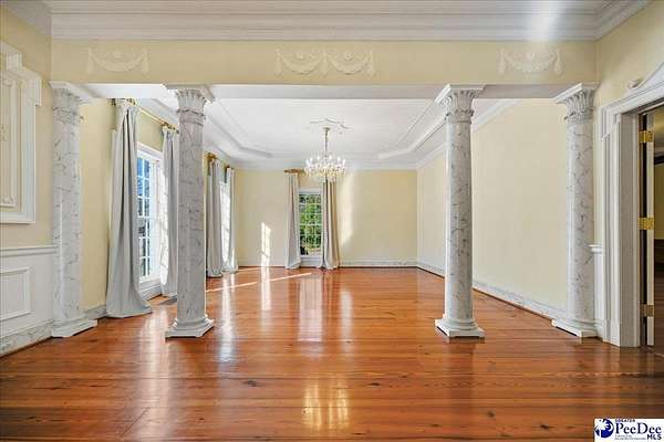 Elegance abounds in this spectacular 5 bedroom, 3.5bathroom estate! Situated on 1.58 acres in the heart of Florence and conveniently located across the street from Lucas Park. The splendor of this home spans ceiling to floor, room after room with impressive craftsmanship in every detail. The standout appeal of this home begins with the WOW factor of the exterior. The presence and curb appeal is one of a kind and will draw you in for more! Upon entering the home, you are greeted with a grand two-story foyer with spiraling staircase. Each room of this home is detailed with unique and elegant features. Highlights of this home include the open family room with a full wall of windows with a gorgeous view of the courtyard! The spacious sunroom is perfect for bring in the nature of the surrounding yard while in the comfort of your home! With over 6,000 square feet, the floorplan includes a formal dining room, living room, den, kitchen, family room, sunroom, and a first-floor owners suite. The upstairs includes four bedrooms, a bonus room and two full bathrooms. Features of this spacious and private1.58 acres includes a 3-car detached garage with a bonus room, half bathroom, and the entire 1970 square foot space is climate controlled. The grounds also include a half circle driveway with plenty of room for parking and play, a fully fenced in backyard, a gorgeous courtyard, and two fountains top off the sophisticated details of the grounds. This home has it all! Special and unique in every way and truly a one-of-a-kind standout home in Florence. Don't delay in seeing the details and elegance firsthand.