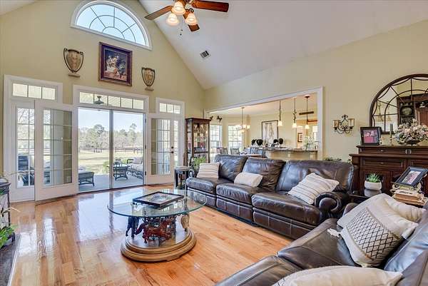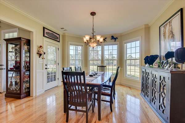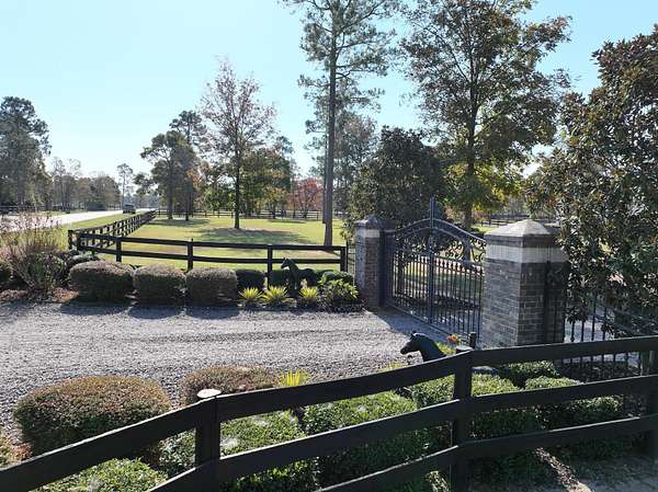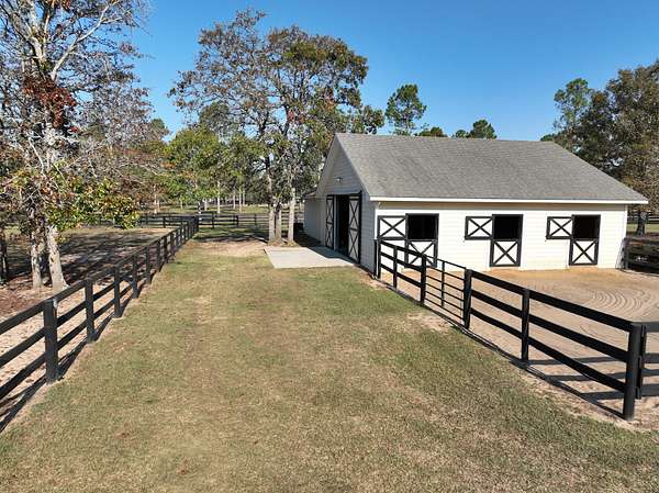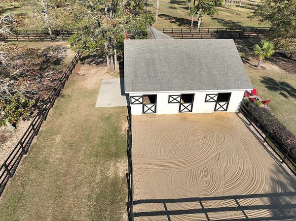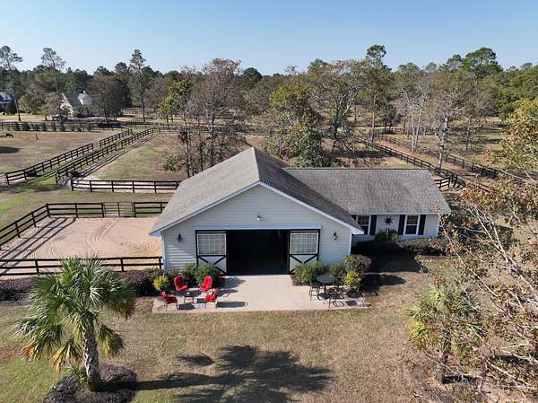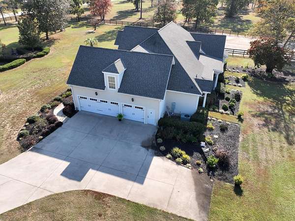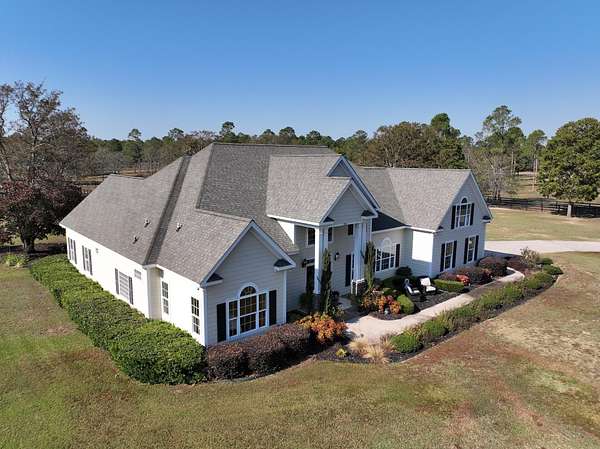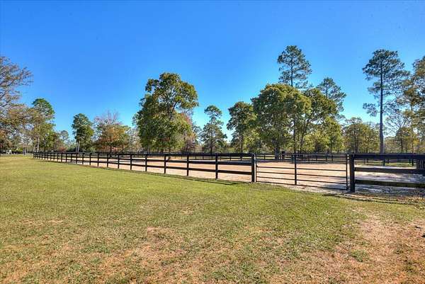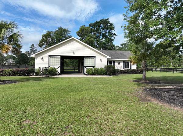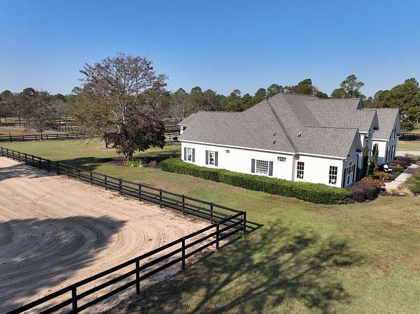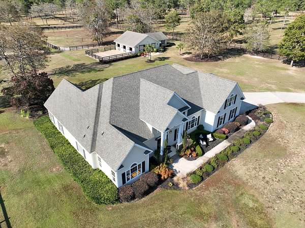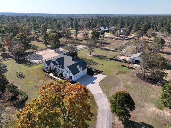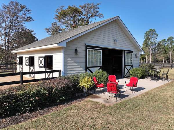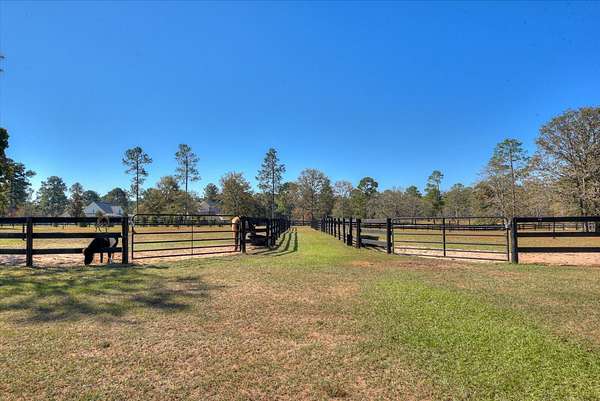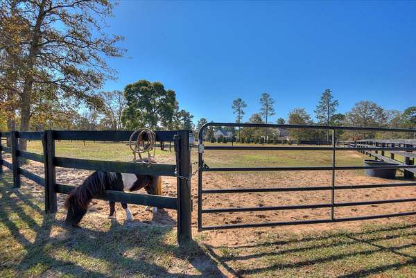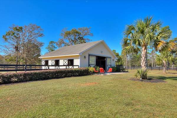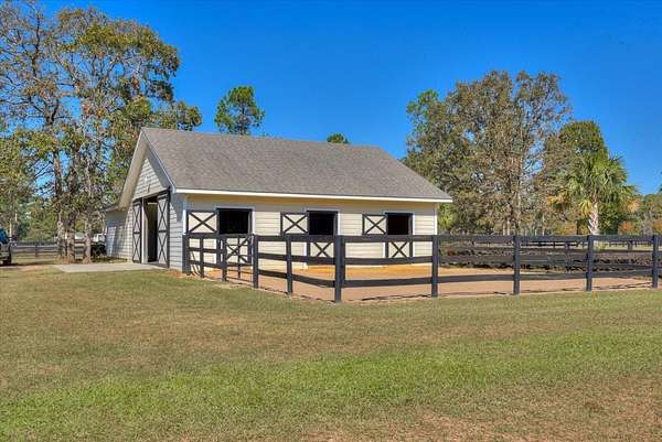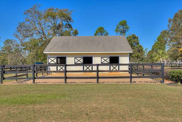 Hard to find, like new 3,104 sq ft home in Three Runs Plantation Equestrian Development on 4.77 irrigated acres, all completely fenced with your own private 200' x 70' arena. The living space consists of 3 bedrooms and 3 full baths (built in 2012) and has a wonderful custom kitchen with granite countertops. The living room has a cathedral ceiling, extra-large non-vented gas burning fireplace and mantel with gorgeous views of the back yard and the horses. All rooms have solid oak floors or ceramic tile, access to one of the many central vacuum connections and there is absolutely no carpet in the home. The formal dining room has wainscotting and architecturally designed columns. There is an upstairs office that could also be a wonderful den that adjoins the third bedroom. The primary suite has its own private door to the backyard and the well-designed bathroom has double vanities, large walk-in shower, extra deep bathtub and two well designed walk-in closets. There is also a laundry room with washer & dryer connections, extra pantry space and a laundry sink with granite countertops and a tile floor. There is an attached three car garage with a central vacuum connection and plenty of storage room. Three Runs Plantation has natural gas and fiber optic internet for every house. The barn has 4 large stalls, a gorgeous tack room with sink, a wash bay with heater & hot and cold water, an attached 24' x 24' room for equipment storage, room for an extra vehicle, and space for lots of hay and feed. Some of the popular Three Runs amenities are located only 2 lots away, including the cross-country schooling course, 2 arenas with professional footing, the dressage arena has mirrors, the activity building has a kitchen and a workout room with exercise equipment. Also 3 blocks north are more arenas, clubhouse with kitchen and a library, card tables and a swimming pool with a large picnic pavilion. There are over 32 miles of trails that traverse the properties in Three Runs. This home is a one owner house and has been meticulously maintained and truly feels like a new home.