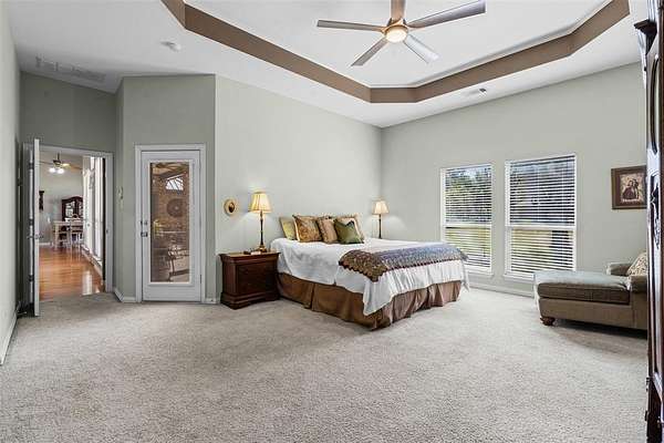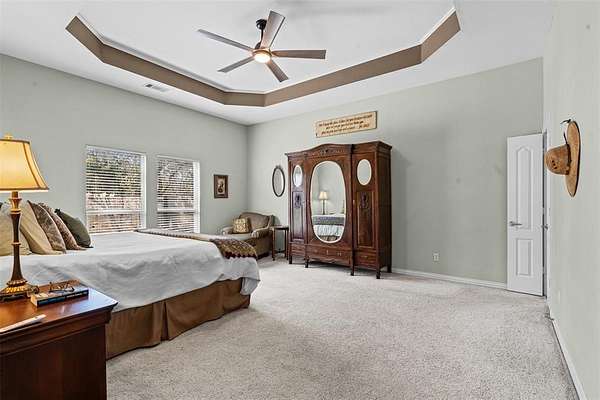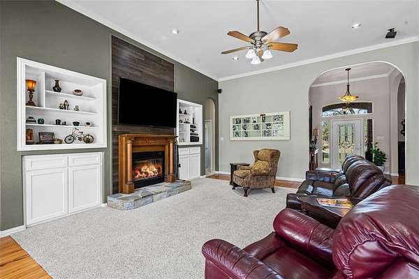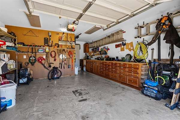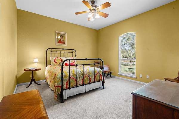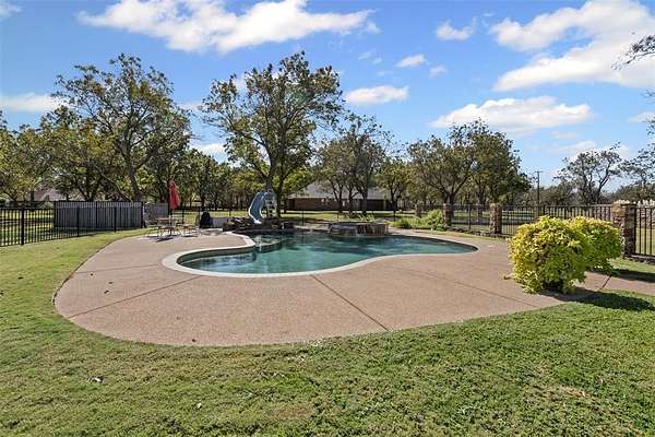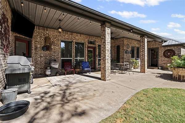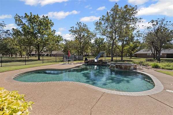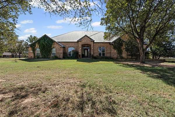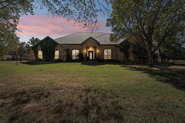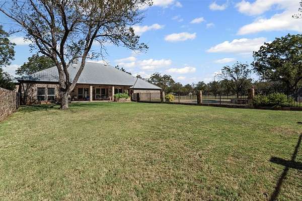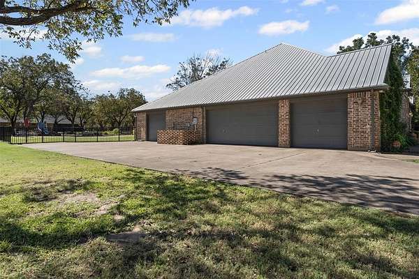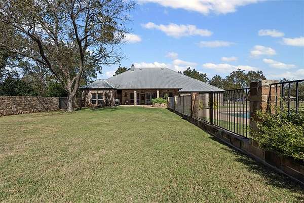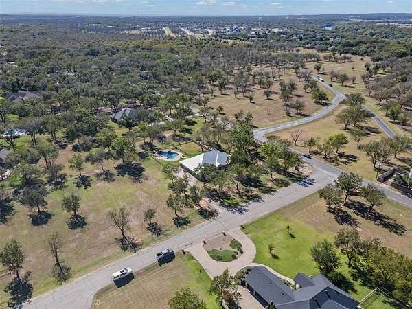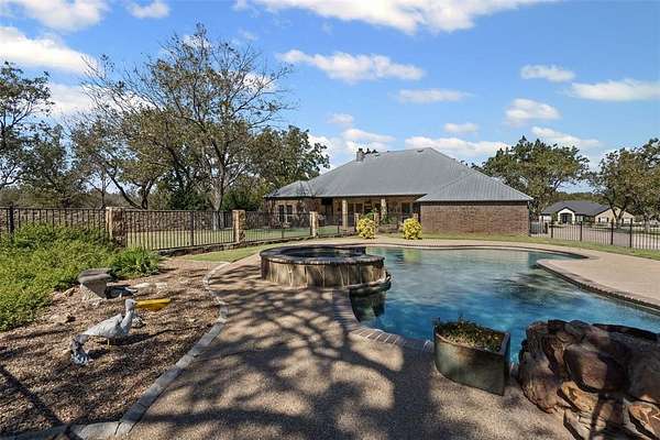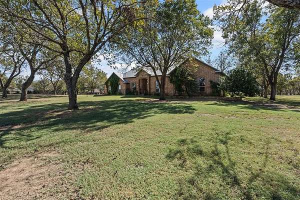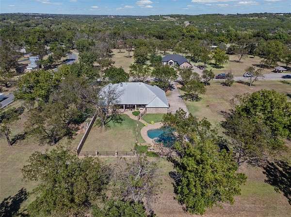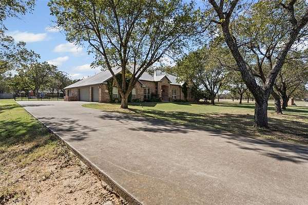 Beautiful curb appeal and resort-style living await in this spacious, single-story brick home! Located in The Retreat within the desirable Pecan Plantation community, it's perfectly situated on a 1.697-acre corner lot and surrounded by mature trees. Inside, you'll find 4 bedrooms and 2 baths with an open-concept living and kitchen area featuring warm wood floors, large windows with scenic views, and a cozy fireplace. Large kitchen with stunning granite countertops, an abundance of white cabinetry, center island with dual sinks and breakfast bar seating flows seamlessly into the breakfast nook and has a formal dining area just around the corner, creating an inviting space for everyday living and entertaining. The spacious primary suite includes a comfortable seating area and a stunning ensuite with dual granite vanities and a large walk-in shower, and a generous closet. Step outside to your backyard oasis--fully fenced and beautifully landscaped with a sprinkler system using Orchard water, a large covered porch, and a sparkling chlorine pool perfect for relaxing or hosting family and friends. The property also boasts a 4-car garage with a 220 plug; the end garage serves as an excellent workshop, complete with a 50-amp outlet, sink, and generous storage. Additional features include a dog room off the back porch and impeccable outdoor spaces designed for relaxation. Located in the gated, resort-style community of Pecan Plantation, residents enjoy 24-hour security, golf courses, a marina, tennis courts, swimming pools, restaurants, a grocery store, and more--all just a short drive from the Metroplex. Come experience this exceptional home and the incredible lifestyle that comes with it--life happens here!