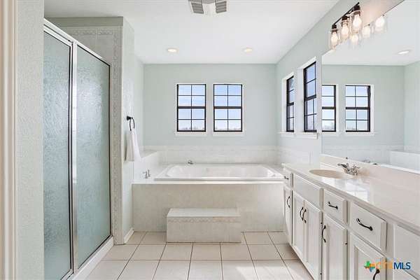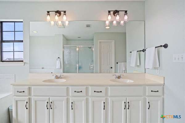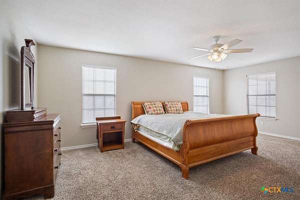 - All Bedrooms Up, Ceiling Fans, Crown Molding, Dining Area, Double Vanity, Entrance Foyer, Garden Tub Roman Tub, Granite Counters, High Ceilings, Multiple Living Areas, Pantry, Separate Formal Dining Room, Separate Shower, Tub Shower, Upper Level Primary, Window Treatments