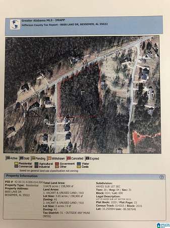 Lets head to the country!! A great opportunity for this 3.65 +/- acre lot on S. Shades Crest Road next to the High Forest subdivision on Lake Drive. Gently sloping, wooded lot that can be subdivided or better yet - build your dream home in the country. Major utilities available along the street. 425' of frontage on S. Shades Crest Road and 307' on Lake Drive. All the access roads around the property are paved and maintained and there are homes on all sides. Property has a Bessemer address in Jefferson County and zoned for McCalla/Mcadory schools. Covenants and Restrictions.
