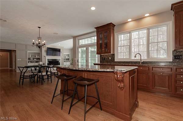 Exclusive hilltop property in the The Sanctuary is set back on over 2 acres, offering privacy and one of a kind outdoor beauty and indoor comfort. Offering 5,600+ sqft of finished living space, this stately colonial features 5+ bedrooms, 4 full baths & 2 half baths, designed for both everyday comfort & upscale entertaining. A dramatic two-story foyer welcomes you, flanked by a formal dining room & formal living room. The heart of the home is the impressive twostory great room with custom built-ins, a gas fireplace, and a wall of windows showcasing peaceful wooded views. The chef's kitchen is open and inviting, featuring high-end appliances, a large island, wet bar, and French doors that lead to the paver patio-perfect for indoor/outdoor entertaining. 1st floor owner's retreat w/ a tray ceiling, spa-like ensuite including double sinks, makeup area, soaking tub, stone tiled shower & an extra-large walk-in closet w/ custom built-ins. The main level is completed by a beautiful off the library with built-in bookshelves, two half baths, & convenient and functional laundry room. Upstairs, you'll find 4 generously sized bedrooms, w/ two spacious Jack-&-Jill bathrooms. The newly updated lower level expands your living options w/ new LVT flooring, a sitting area w/ gas fireplace, sliders to the backyard, & a large wet bar. This level also includes a full bath, gym w/ built-in cabinetry, a flexible bonus room featuring a 4-5 person Canadian Hemlock sauna or easily converted into an additional bedroom. Lets not forget the utility space with ample storage with tons of shelving. Outside, enjoy a serene backyard oasis w/ a paver patios and water feature. The extra-large heated three-car garage adds even more convenience. There are so many updates & upgrades - Please reference the upgrades list in the supplements. Ideally located close to freeways, shopping & restaurants, this exceptional property offers luxury, privacy, & functionality in one remarkable home!