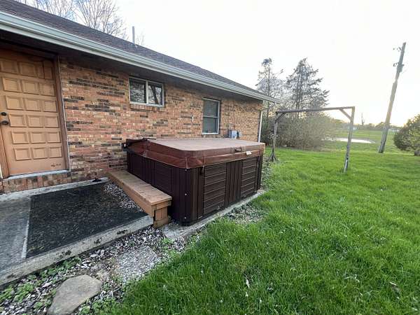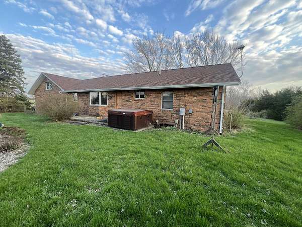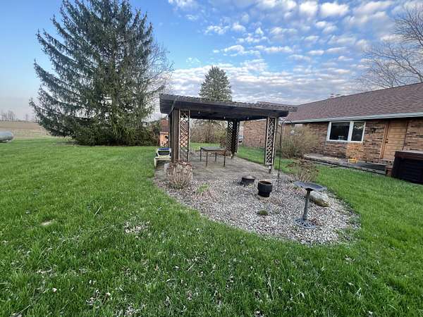 As you meander down the drive entry of this ''Country Oasis'' you will be enveloped by a sense of true tranquility. This homestead is graced with a full brick custom built ranch, with a Spanish flair of arched transoms, nestled on 5 rolling acres and it's own private 1 1/2 acre stocked pond with a fishing dock for upcoming Summer enjoyment. 60'' cut Dixon Zero Turn mower and Hot Tub enhance your Summer convenience and enjoyment. Amish craftmanship radiates throughout the cabinetry of the kitchen, some with handmade stain glass inlay fronts. The adjoining dining room, with a full bay window, overlooks the pergola, accented with bordering rock garden landscaping. Handcrafted arched doorways lead to the family room highlighted by a massive, full brick wall with decorative fireplace (could be made a functional gas, if desired, ), curved hearth, built in arched brick bookcases and additional illuminating, oversized bow window . Six panel solid hardwood doors throughout. Updated spacious upstairs bath complete with a convenient clothes chute to the basement laundry room. Full basement offering a full walled brick woodburning insert and rustic Irish Pub inspired brick pillars, just waiting for you to finish it with your own personal taste. 2nd full bath is in the basement waiting to be updated. Second staircase from the garage to the basement allows easy access to move large items in and out. Mammoth floored bonus room/attic above oversized 2 car garage provides awesome storage or space for expanding your living area. New in 2024, roof, gutters with leaf guard, downspouts, chimney 4'' concrete chimney cap, stainless steel cover and garage doors. New hot water heater within the last year. If you are looking for an opportunity of a ''Forever Home'', this home may be just the answer! It's just waiting for your personal transformation. Basement pictures coming next week after cleaned out. (Agents-Please read Broker Remarks prior to setting a showing.)