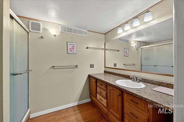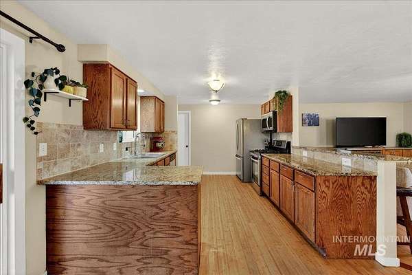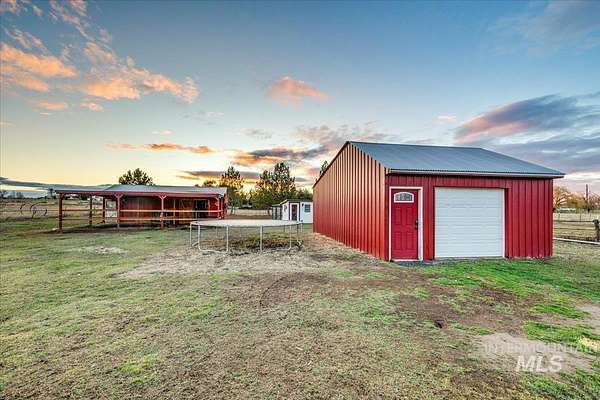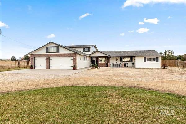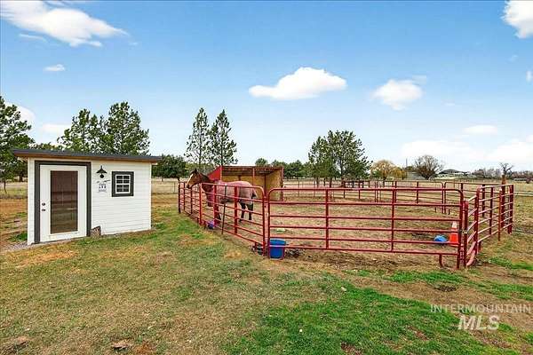 Situated on 1.5 acres with no HOA, this versatile property offers space, functionality, and room to enjoy the Idaho lifestyle. The main home features 4 bedrooms, 3 bathrooms, and 2,216 sqft with a split floorpan and a renovated main-level primary suite, with a large walk-in closet. An attached ADU completed in 2023 offers approximately 400 sqft of additional living space, 1 bedroom, 1 bathroom, kitchenette with quartz countertops, vinyl wood flooring, 2 private entrances, and it's own private dog run. Creating great potential for multigenerational living, guest quarters, or rental income. The property is well equipped for those looking for space and utility with an oversized 3-car garage, covered patio, and multiple functional outbuildings including an 18x24 shop and barn. Additional exterior features include a chicken coop and round pen panels that will remain. Horses are welcome, making this an excellent option for a hobby farm or rural lifestyle living. Conveniently located just minutes from shopping, dining, and everyday amenities while still having the balance of peaceful acreage living.