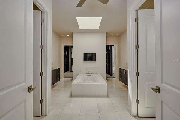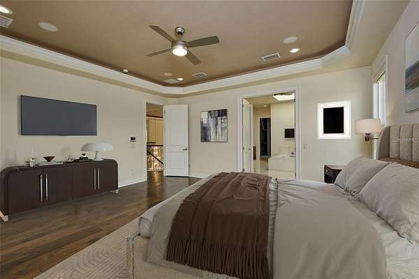 Upstairs, the luxurious primary suite offers a peaceful escape with tray ceilings, ambient lighting, built-in surround sound, and a massive wrap-around closet with custom built-ins. The spa-inspired ensuite features dual vanities, two private toilet rooms, a soaking tub, and a walk-in shower.