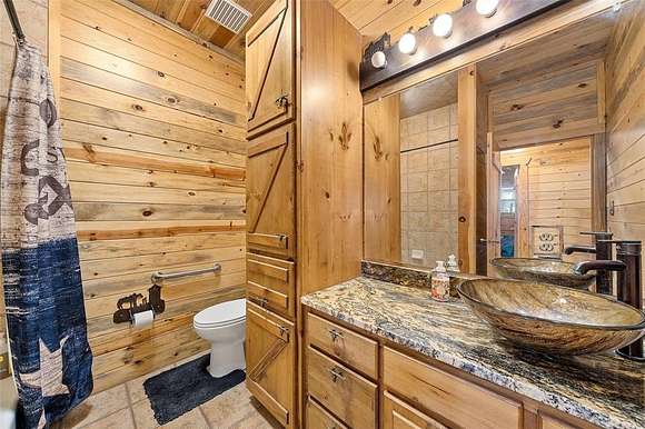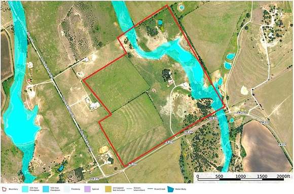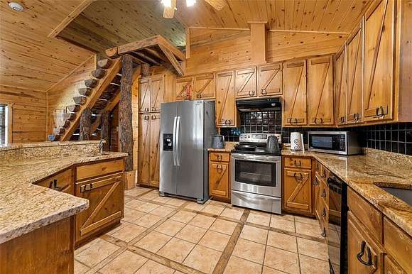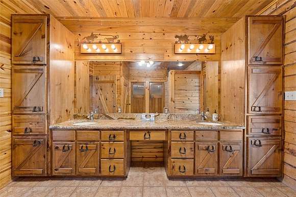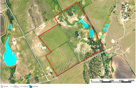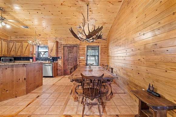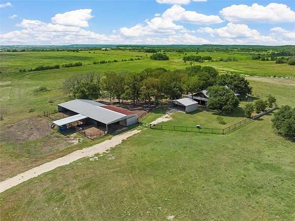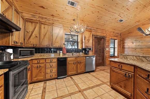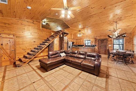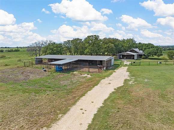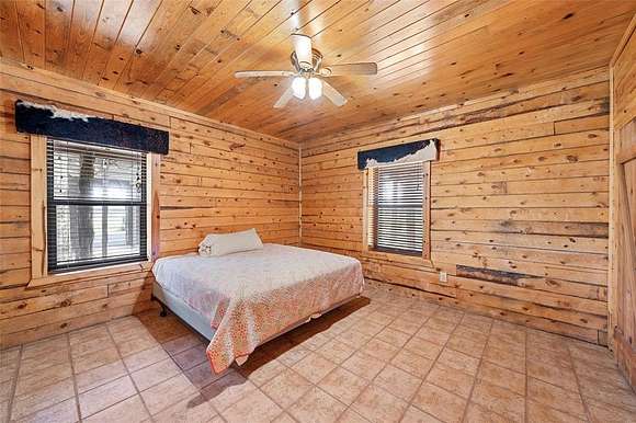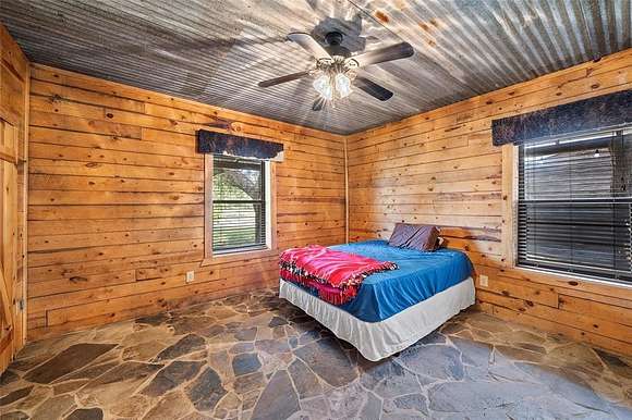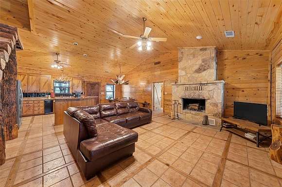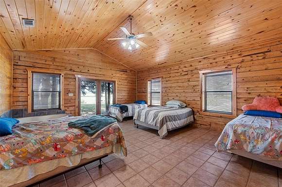 Unique Colorado-style log home on 155 acres between Clifton and Cranfills Gap. Constructed in 2000 with ponderosa pine logs on the exterior, the 2,176 sf 3BR 2B home has pine ceilings and walls throughout the house. The terrain is primarily open with scattered trees. Surface water includes 2 small lakes stocked with fish and 1 stock tank. Good duck and dove hunting, with some pigs and whitetail.
