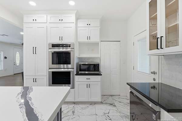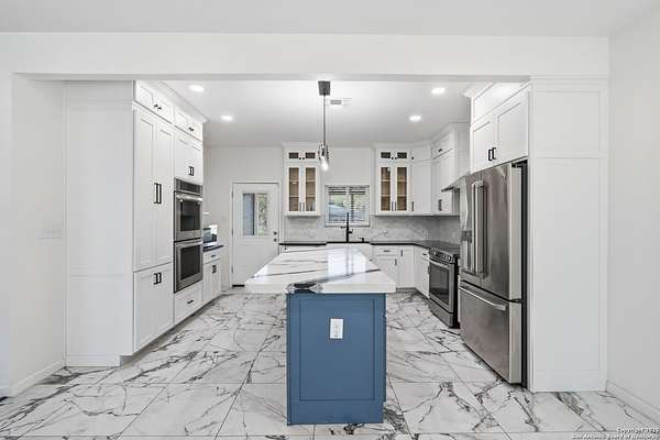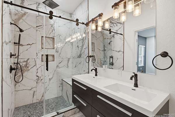 Located just off Eckert and Bandera at the edge of the Medical Center and steps from John Marshall High School, this unique property offers flexibility and opportunity on a fully fenced 2.42-acre lot. Under one roof, you'll find two separate rentable units, each with its own front and back entrance, full kitchen, bedroom or office spaces, bathroom(s), laundry area, and private back deck, perfect for living on one side and running a business on the other. Whether you're a contractor, small business owner, stylist, barber, or professional needing workspace and equipment storage, this setup is ready to support your vision. The interior features stylish finishes, upgraded kitchens and bathrooms, including quartz countertops, updated lighting, plumbing fixtures, ceramic tile, and laminate flooring throughout, with stainless steel appliances and a washer and dryer in both units. Outside, enjoy an electronic gated entrance, ample parking, paved pad space, a 32x19 carport, two lockable storage containers, a gazebo, and expansive outdoor space perfect for business uses like landscaping, HVAC, plumbing, roofing, and more. With plenty of space to park equipment, vehicles, and trailers, along with the rare opportunity to live and work on the same property, this is a standout opportunity. Properties with this level of flexibility are rare, so schedule your private tour today before it's gone.