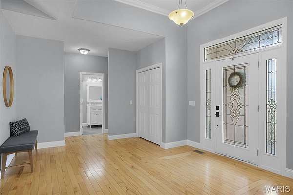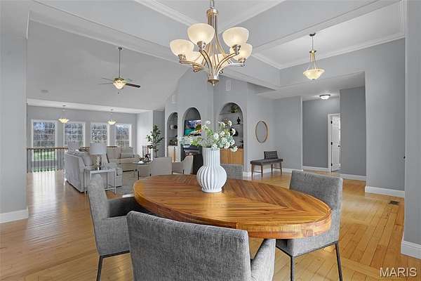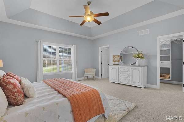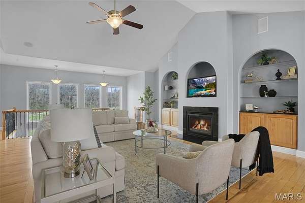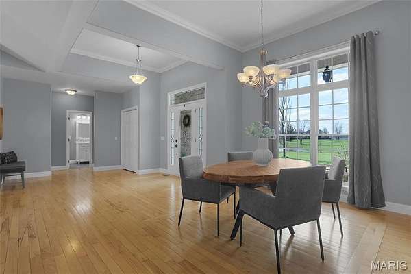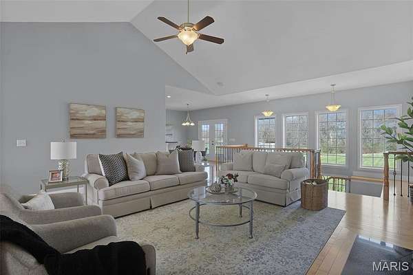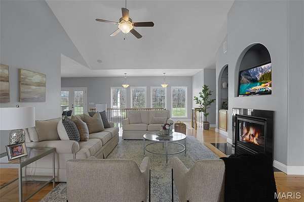 Experience the perfect blend of spacious luxury and tranquility in this ranch home nestled on approx 6.8ac in Triad School District. With the backdrop of mature trees, this home offers both privacy & natural beauty in a serene setting. Thoughtfully designed for comfort & elegance, this split plan features five bed & four full baths including the first primary suite on the main level w/separate tub & shower, massive walk-in closet & peaceful views. The inviting living room features a soaring cathedral ceiling, cozy fireplace & custom built-ins creating a warm yet refined gathering space. The formal dining room is enhanced w/crown molding provides the perfect setting for entertaining, while a stunning wall of windows along the back of the home fills the space w/natural light & captures panoramic views of the backyard & woods. The open-concept layout flows seamlessly into a well-designed kitchen & main living areas, ideal for everyday living & hosting alike. Step outside to the covered maintenance-free deck where you can relax or entertain. Fabulously finished walkout lower level expands your living space even further, featuring a secondary primary suite - perfect for guests or multi-generational living, along with the 5th bedroom, 4th full bath, spacious family/recreation area & a well-appointed wet bar. Direct access to the outdoors completes this versatile lower level. Also enjoy the lake views from the front porch & spacious front yard. This extremely well-maintained property has it all! Be sure to check out all of the photos showing this amazing property during all of the seasons!