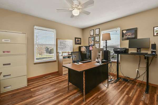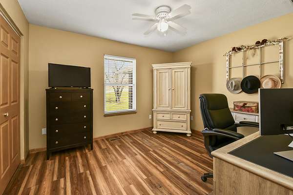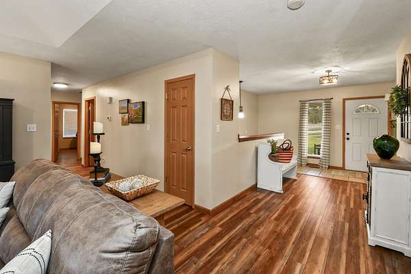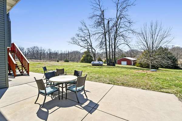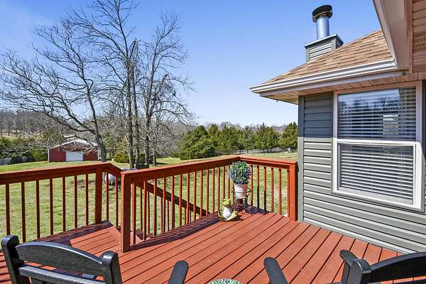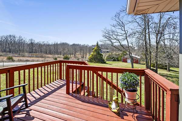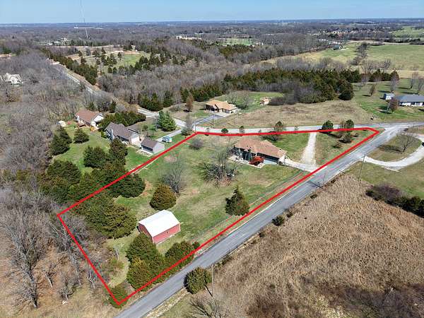 Experience four-season country living, 1.56 acres, fenced, 15 minutes from Nixa/Ozark, 20 minutes to Springfield, and 30 minutes to Branson. Main floor has primary and two other bedrooms, as well as two full baths. Spacious country kitchen and a dining room large enough to seat twelve. Deck is off the dining room where you can enjoy the country view. Entry foyer is wide and living area is spacious. Downstairs is a speakeasy lounge or media room, as well as another bedroom (possibly two) and plenty of room for exercise/storage and a full bath. Don't forget the 30' x 32' shop equipped with 100 amp electrical service. There's also a raised bed garden. New roof, siding and gutters in July 2025. See other highlights and improvement details on attached Improvements and Highlights document.