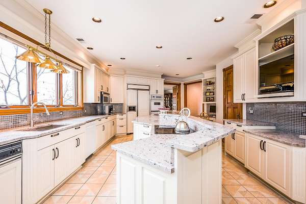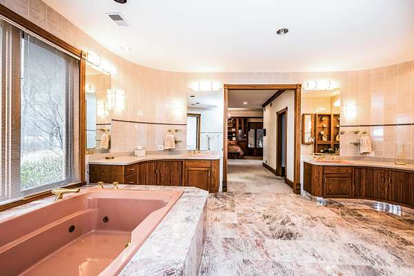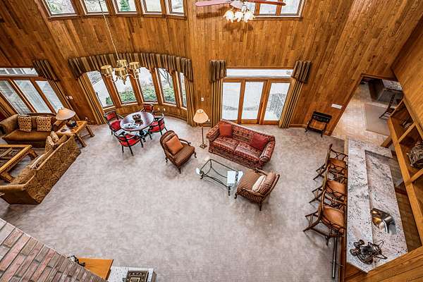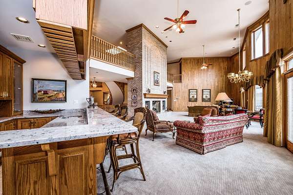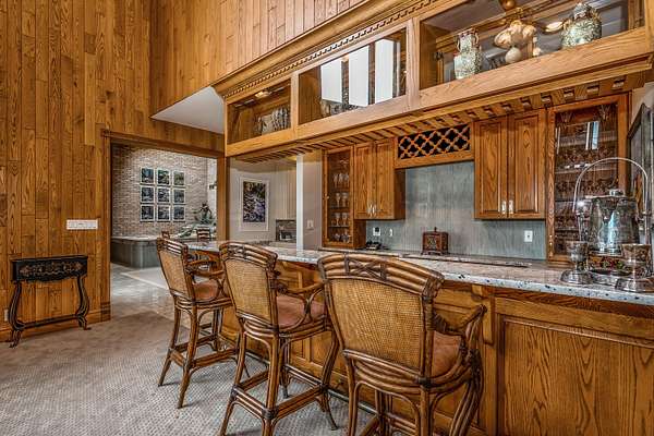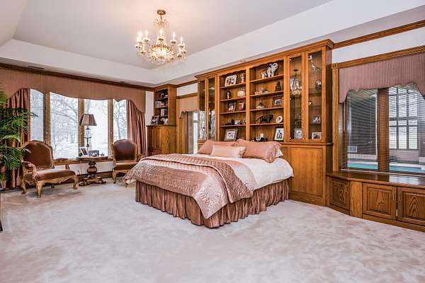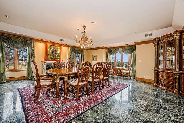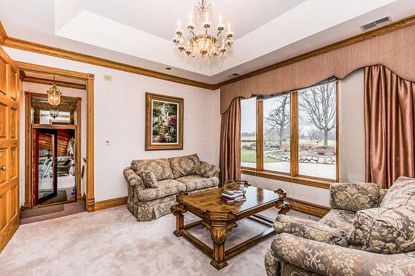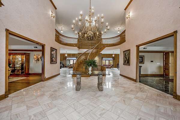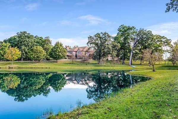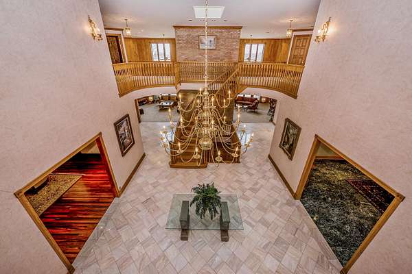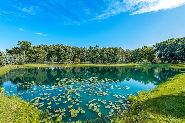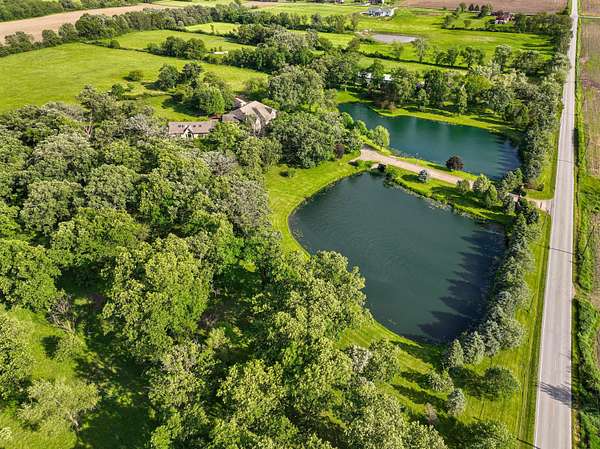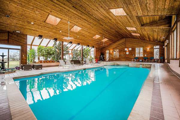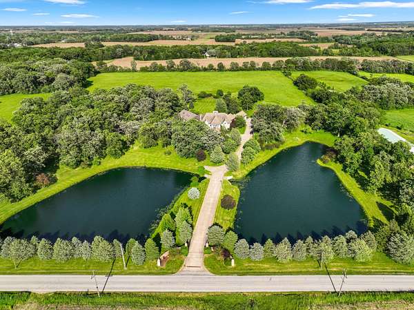Through the private gate and past two beautiful ponds lies the entrance to this luxurious custom built 5BR/5BA home with large year-round indoor pool and built-in hot tub all on 40 acres. The soaring 2-story foyer with sweeping staircase welcomes you home. Stunning formal living room with Hawaiian teak floors and walls sets the stage for entertaining, along with the formal dining room with marble flooring. The spacious eat-in kitchen has a large island and opens to the great room with a fireplace and large wet bar. Lower level includes light-filled rec room with pool table, guest suite with adjacent party kitchen and convenient entrance from garage. Large bedrooms and well appointed bathrooms are designed for comfort. The indoor pool is tucked in a large solarium.