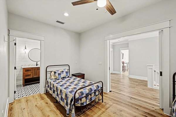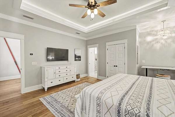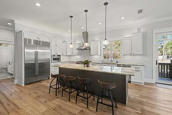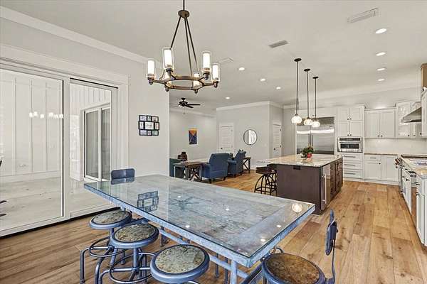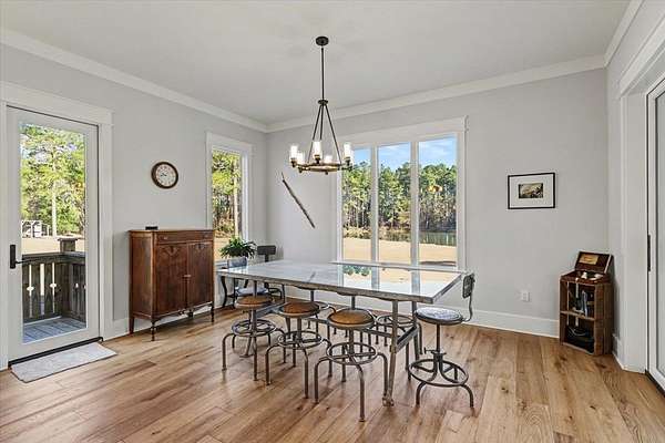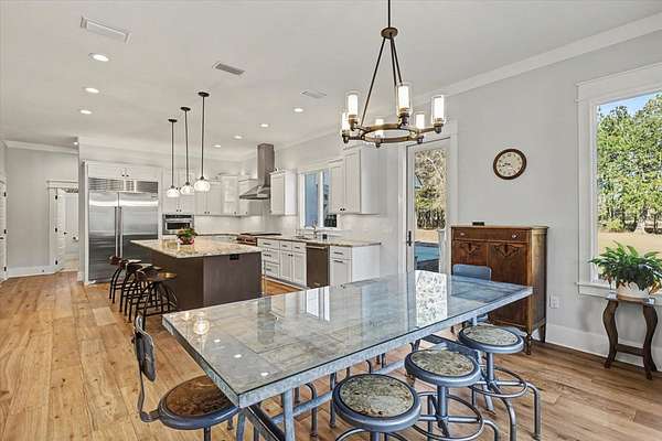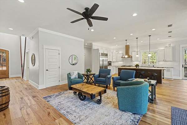 Situated on approximately 20 private acres just minutes from Thomasville, this nearly new modern farmhouse blends timeless architecture with thoughtful design and everyday livability. The property overlooks a scenic private pond, creating a peaceful backdrop rarely found so close to town. Offering over 3,500 square feet, the residence features 4 bedrooms, 3 full baths and 2 half baths. The heart of the home is a beautifully appointed chef's kitchen with top-of-the-line appliances, including a Wolf gas range, Sub Zero refrigerator, Edgestar beverage cooler and KitchenAid dishwasher & microwave as well as an oversized center island and open sightlines to the family room and expansive covered rear porch -- ideal for indoor-outdoor living and entertaining. The floor plan is exceptionally functional, with two spacious suites on the main level including the primary retreat, while upstairs offers additional bedrooms and flexible media/bonus spaces perfect for family or guests. Large triple sliding glass doors seamlessly connect the living room to the porch, creating one cohesive gathering space with stunning pond views. The climate-controlled double garage adds convenience and versatility year-round. A rare opportunity to enjoy acreage, privacy and modern comfort in a picturesque Thomasville setting.