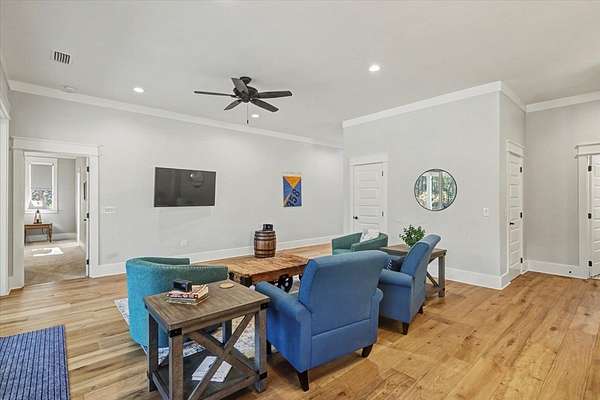 - Blinds, Built-Ins, Cathedral, Ceiling Fan(s), Ceramic Tile Bath, Crown Moldings, Double Entry Doors, Double Vanities, Entrance Foyer, Hard Surface Countertops, High, Laundry Room, Light & Airy, Luxury Shower, Master Bath, Newly Painted, Open Floorplan, Recessed Lighting, Sheetrock, Shiplap, Sliding Glass Doors, Trey, Trey/Box, Two Master Suites, Two Story Foyer, Vaulted, Walk-In Closets