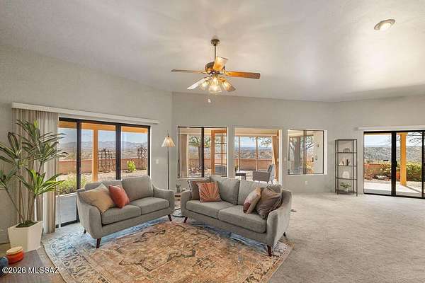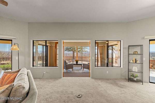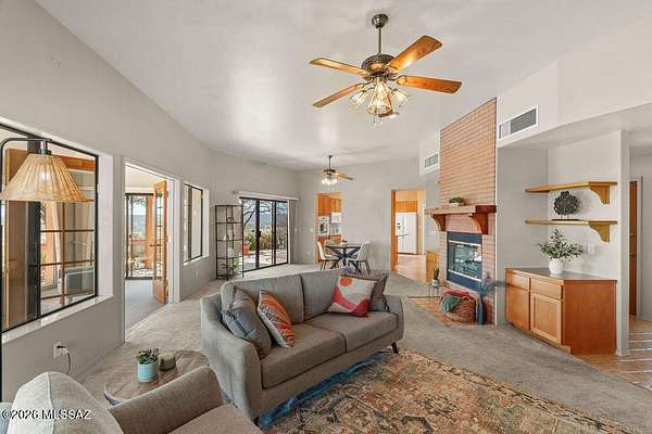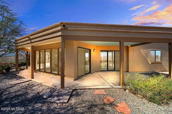 This property is only being sold with MLS #22606793 (Parcel #115-15-409) for an opportunity to own a total of three parcels totaling 2.46 acres! Perched at the top of a quiet cul-de-sac, this custom-built 3 bedroom, 2 bath home offers spectacular panoramic views and exceptional privacy. The property is uniquely positioned with Coronado National Forest bordering one side and additional privately owned land on the other, preserving the natural surroundings and preventing nearby development. The elevated hilltop setting provides peaceful desert and mountain vistas in nearly every direction. Inside, the home features classic Southwestern charm with a traditional beehive fireplace and several sliding glass doors that capture the views while allowing fresh mountain air to flow through the living spaces. An Arizona room provides the perfect place to sit back and take in the surrounding landscape and views year-round. The layout takes advantage of natural light and the surrounding scenery throughout the home. A spacious 3-car garage provides plenty of room for vehicles, storage, or hobby space. Located at the end of the cul-de-sac, the property enjoys a quiet setting with minimal traffic and a strong sense of seclusion.