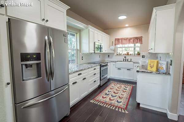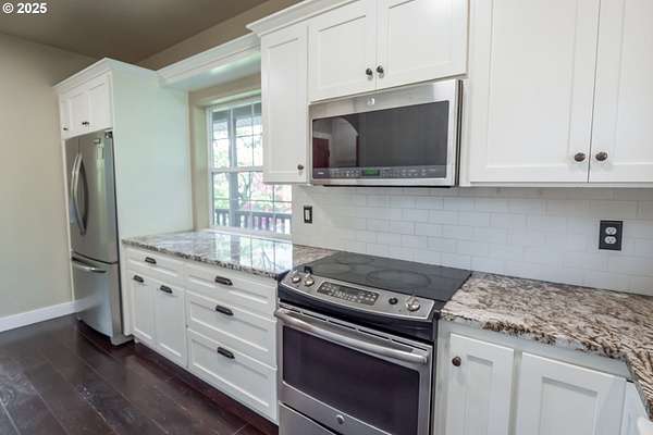 - Dishwasher, Free Standing Range, Free Standing Refrigerator, Granite, Microwave, Pantry, Stainless Steel Appliance