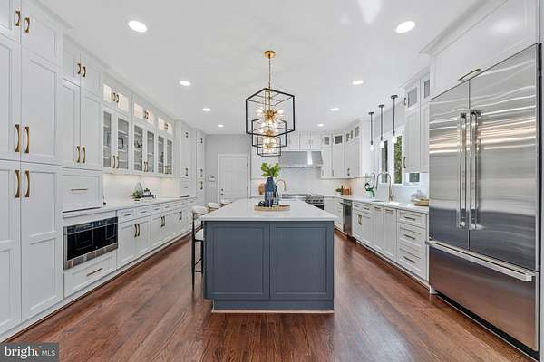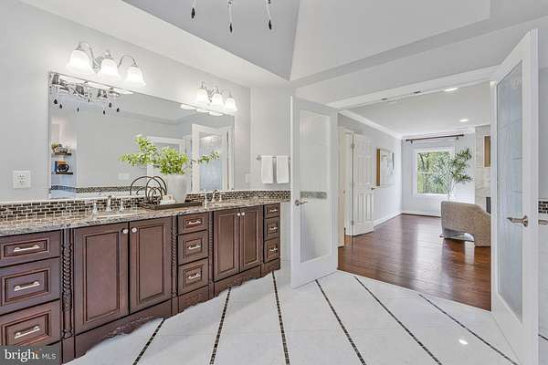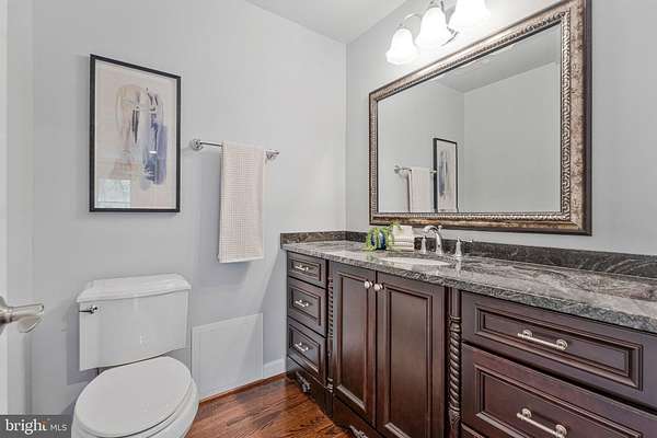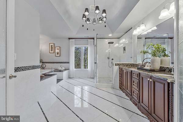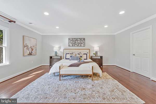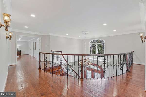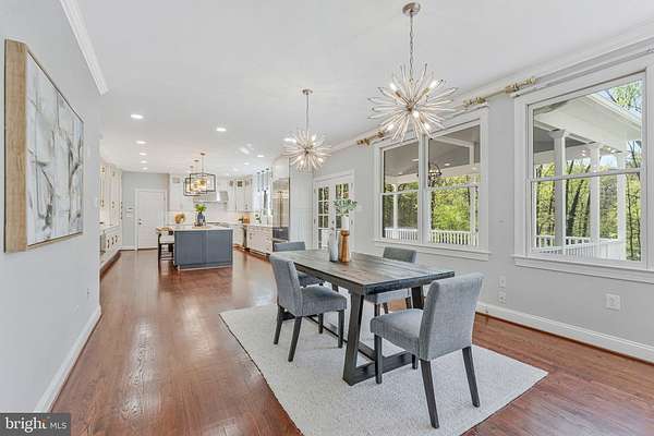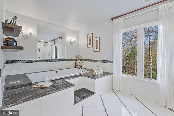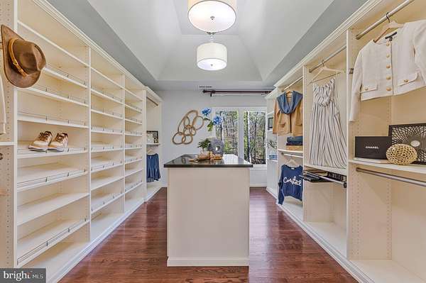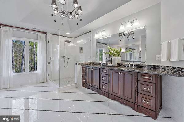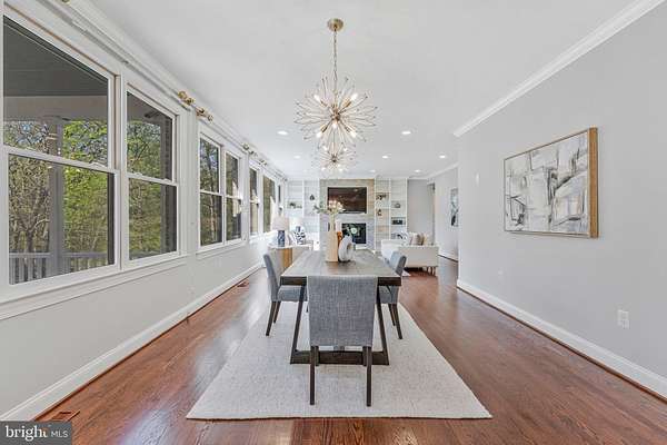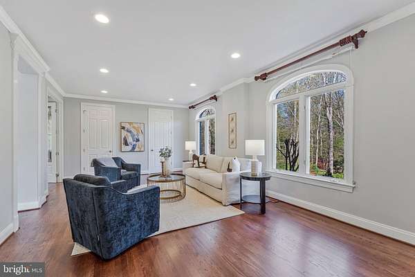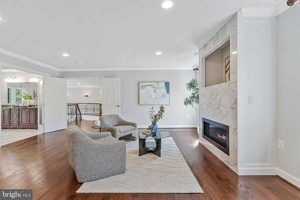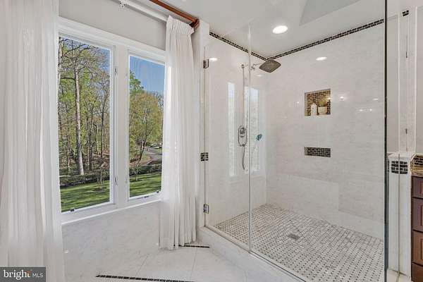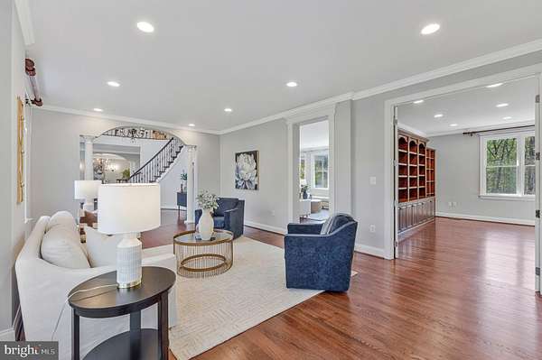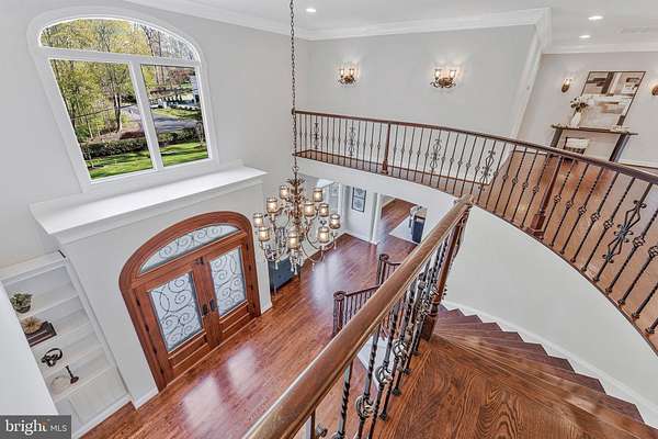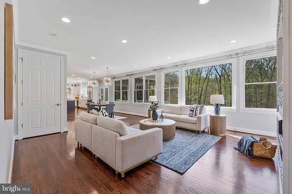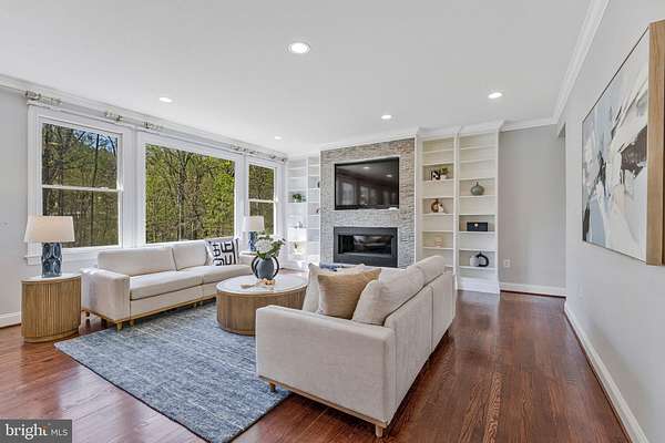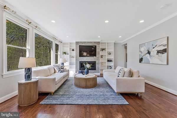 Perched on a picturesque 1.9-acre lot in the sought-after community of Woodside Estates in McLean, this elegant and meticulously maintained 6,000+ square foot colonial offers 5 bedrooms and 5.5 bathrooms across three finished levels. Surrounded by mature trees and natural beauty, the home combines a sense of privacy and tranquility with exceptional convenience. Throughout the residence, hardwood floors and recessed lighting span all levels, complementing the home's timeless architecture and thoughtful design. Ideally positioned on the border of McLean and Great Falls, the property is just minutes from downtown McLean, Great Falls Village, Tysons Corner, and Reston, offering easy access to world-class shopping, dining, and major commuter routes. The stately front entrance opens to a grand foyer with a graceful circular staircase and wrought iron banister, creating an immediate sense of elegance. The main level has been thoughtfully remodeled to include a separate formal living room and a spacious home office or library lined with built-in bookcases, ideal for both entertaining and working from home. At the heart of the home lies the gourmet kitchen, beautifully appointed with a large center island, quartz countertops and backsplash, custom 42-inch white cabinetry, and top-of-the-line JennAir stainless steel appliances. Just beyond, the expansive family room serves as a warm gathering space, highlighted by a linear gas fireplace with stone surround, recessed television niche, and custom built-ins. French doors open to a generous covered deck overlooking the terraced backyard and the peaceful setting of Rocky Run Creek, creating a seamless transition between indoor and outdoor living. An elegant powder room completes the main level. Upstairs, the welcoming primary suite offers a private retreat with a cozy gas fireplace, an elegant spa-like bath, and custom-designed walk-in closets providing exceptional storage and organization. Across the hallway are three generously sized bedrooms, each with updated en-suite full baths. A large upper-level laundry room with a view, offers ceramic tile flooring, cabinetry, and folding table adds everyday convenience. The walk-out lower level is designed for both relaxation and entertaining, featuring a spacious recreation room with custom bar and gas fireplace. Sliding glass doors lead to an expansive flagstone patio and lawn, providing beautiful outdoor living space overlooking the wooded grounds. This level also includes an additional bedroom with en-suite full bath, perfect for guests or extended family. The level grassy area offers ample space for outdoor recreation and is ideal for the addition of a future pool. With its classic open floor plan, elegant architectural details, spectacular natural surroundings, and exceptional location, this remarkable property offers the perfect balance of luxury, comfort, and everyday livability. Video of property available online.