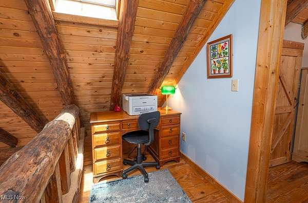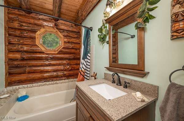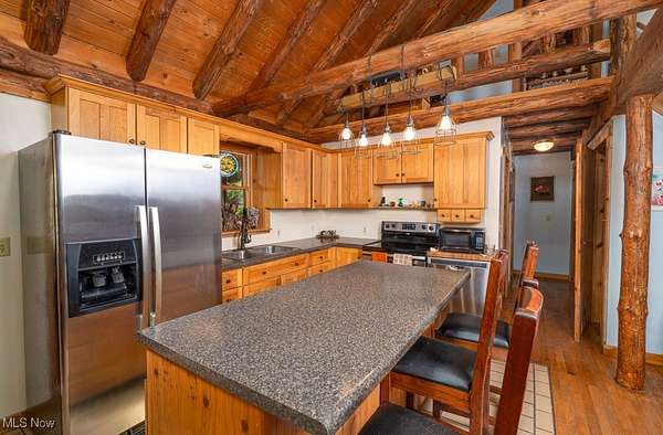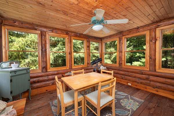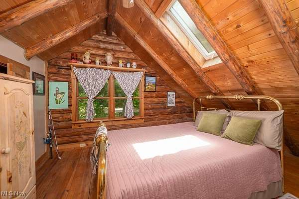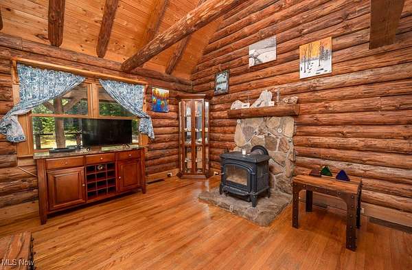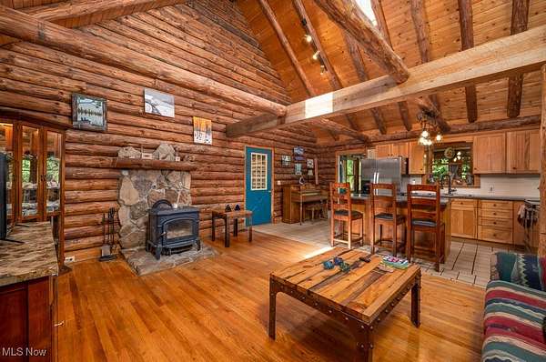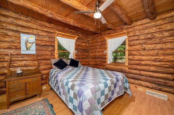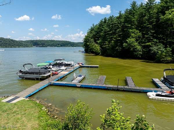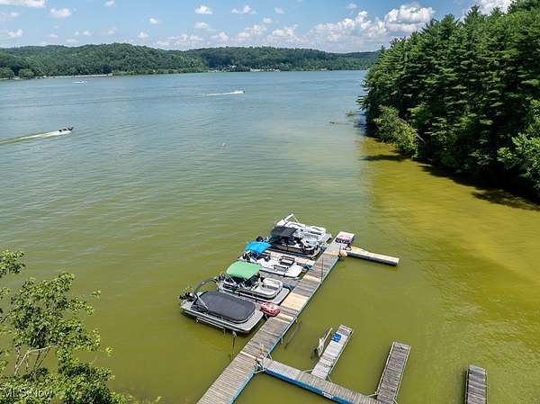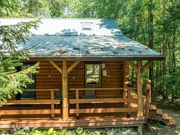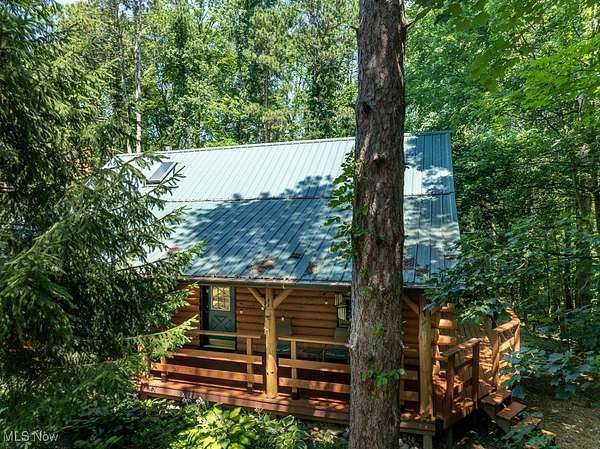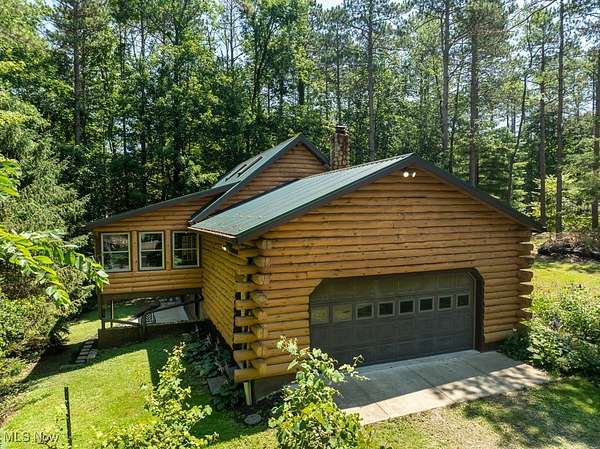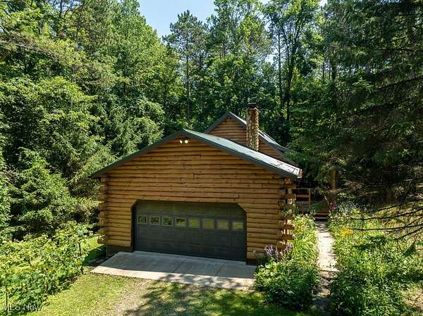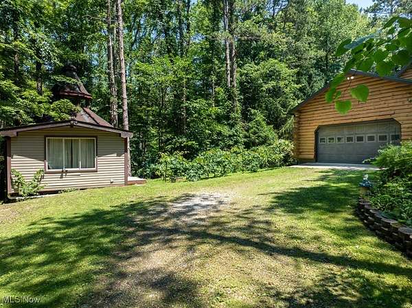 Original owner, first time offered! Rustic log home on 2.6+/- acres of private ground at Tappan Lake! Open floors plan features tongue and groove cathedral ceilings boasting 4 skylights. Kraftmaid, shaker style kitchen cabinets with island breakfast bar. Wide plank red wood floors and tongue and groove ceilings in the sun room. 2 main floor bedrooms with full bath. Private, second floor master bedroom with hardwood floors and skylight. Walk out lower level includes rec room, laundry room and full bath with crown molding. 2 car attached garage. Separate 681 square foot cottage offering many possibilities, currently being used as a winery. Peaceful country setting with covered deck and patio area. Quality built by Pariso Log Homes. New electric hot water heater and heat pump in 2023+/-. Located just a stone's throw from Tappan Lake with dock slip on the water. Seller is retaining mineral rights. Taxes reflect the seller receiving a homestead credit of $368.