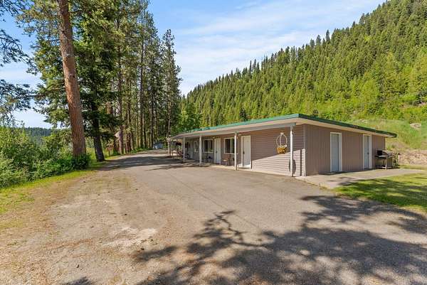 Welcome to the Box Canyon Motel, a great opportunity nestled along the breathtaking International Selkirk Loop, known for international tourism. The waterfront motel features 9 units, and a dedicated owner's suite attached to the office space, offering on-site living. The motel was thoughtfully remodeled in 97' with updated electrical & plumbing. 2 units provide convenient kitchenettes & separate bedrooms. The true gem lies in the 7.5 acres of land, featuring 1720 feet of stunning waterfrontage. This expansive property, once home to Z-Canyon Tours, includes existing stairs to the river, a dock permit, & a convenient restroom facility, ready for new adventures. You will also benefit from water rights from the river, a separate 2-bedroom septic system, & 3 hookups for RVs or a tiny home. Whether you dream of expanding current operations, creating your ideal full-time residence, or a combination of both, the Box Canyon Motel presents endless possibilities in a truly remarkable setting.