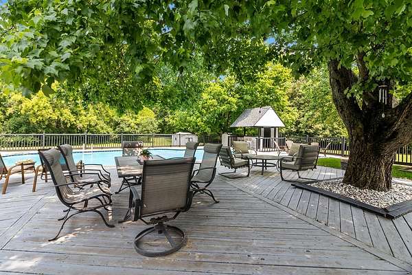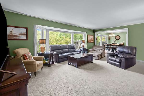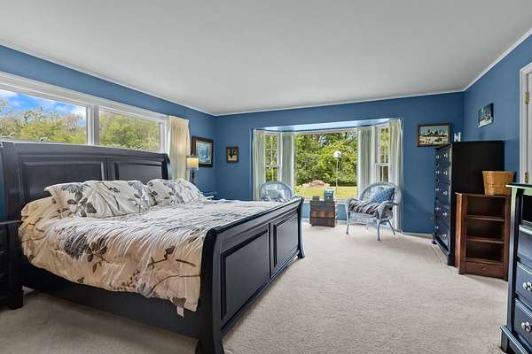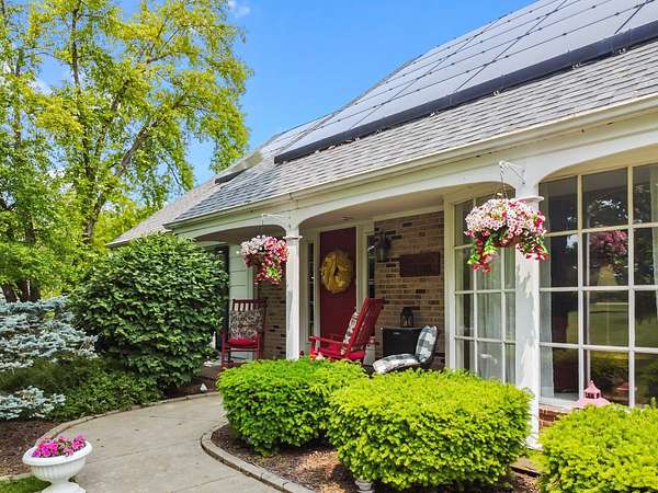 IMPROVED PRICE! Radiating country charm, this home has a warm, inviting atmosphere that makes it hard to ever want to leave. It all begins as you turn onto the drive, winding past mature trees that lead you to the home. The circular driveway gracefully guides guests past the front entrance, while a side-load three-car garage offers ample space for vehicles and recreational gear. You'll enjoy ultimate privacy with over 3 acres of land surrounding the home. A charming front porch welcomes you into the two-story foyer, where a graceful curved staircase and detailed millwork create a striking first impression. The thoughtfully designed layout features a first-floor primary suite with serene views of the backyard and visiting wildlife. You'll also find a spacious office, a formal dining room, and a classic kitchen with bright eat-in area-perfectly suited for both everyday living and entertaining. Two fireplaces add warmth and charm-one in the living room and another in the family room-creating cozy spaces to gather and relax. The detailed millwork and cabinetry throughout creates a feeling of timeless elegance and refined craftsmanship. A combined laundry, mudroom, and pantry offers versatile flex space to keep your home organized and running smoothly. The first floor full bathroom offers seamless convenience for all guests, whether they're relaxing indoors or enjoying the pool outside. Venture up one of the home's two staircases to discover three spacious ensuite bedrooms, a versatile bonus room, and ample storage throughout. The basement offers a wide-open space ready for you to create your perfect recreation room! The backyard oasis is complete with 30'x40' deck and pool cabana. New Architectural Shingle Roof in 2017. Solar panels added 2018. Wiring for a whole-house generator is already installed, along with tubing for a central vacuum system. Equipped with two furnaces, two A/C units, and dual 80-gallon water heaters, this home ensures year-round comfort and efficiency. A large shed offers plenty of extra storage-ideal for lawn equipment and winter storage of pool toys! Zoned A1, Horses Allowed. No HOA rules/regs or fees! Bring your vision and transform this space into your own personal oasis!