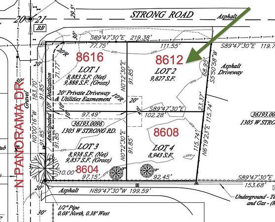 From Five Mile Rd, go east on Strong Rd, right on Panorama Dr to the lots on the corner of Strong Rd and Panorama Dr.