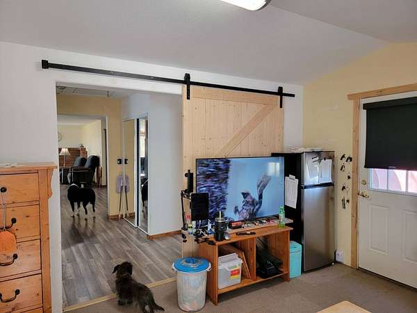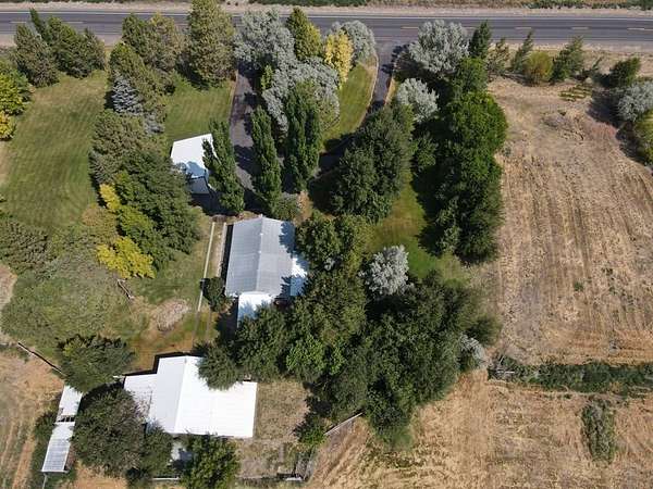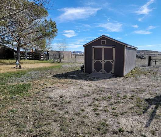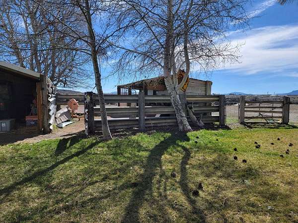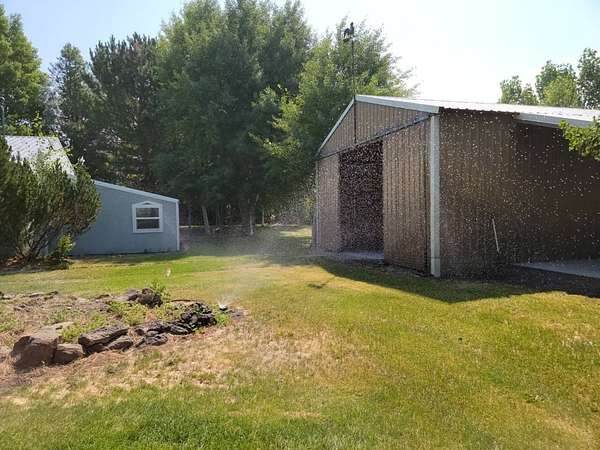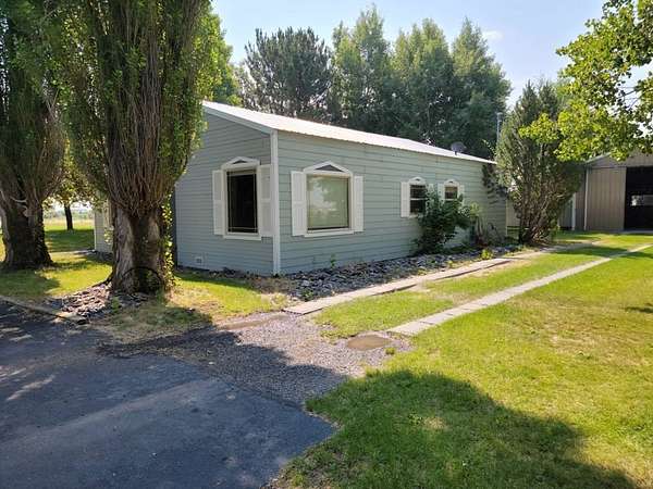 Do you want a nice place with a little bit of acreage, that's just a couple miles out of town with lots of mature trees, a large grass yard that has great views, and has room for your animals and toys? Well, look no further. This 2 bd (with a possible third), 1 ba stick built home on 2.67 acres is a must see! This great place boasts a large 30'X24′ shop with concrete floor, electricity, tons of storage, with two large 11′ tall rolling doors. There is a second smaller shop with a concrete floor and an overhang with concrete floor for storing a lawn mower, tractor or anything else you want to keep out of the weather. There is also an open faced car port (30'X24′) with a concrete floor. Out back there is a loafing shed with a fenced run for your livestock. This well kept property is mostly fenced and crossed fenced. The circular driveway is completely paved! What a nice feature! This home has wonderful mature trees and a large grass yard. The yard is watered by underground sprinklers and has it's own well. No hoses strung everywhere!! What a great way to cool off from the summer heat! The house has two good sized bedrooms and a large third room that would make a great office (internet and WiFi readily available) or converted to a bedroom. This spacious house has a large dining and living room. The kitchen is nicely laid out with lots of counter and storage space. The bathroom has a convenient walk in tile shower. A large sun room faces the yard and the large yard with big windows for a sunshine filled room with a great view. This home is in excellent condition, ready for you to move into and easy to heat and cool. Don't let this wonderful place pass you by come and see it today! This home should qualify for most types of financing.