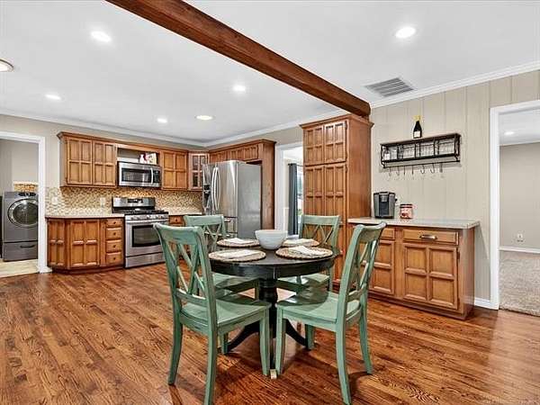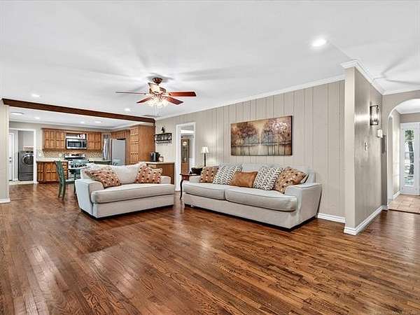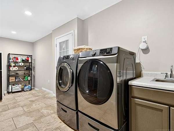 Back on market at no fault of the seller. Nestled on a peaceful street in a mature neighborhood, this stunning 3-bedroom, 3-bath home offers the perfect blend of comfort, convenience, and privacy. Located just 15 minutes from downtown Tulsa, with easy access to highways and the turnpike, this property provides a serene escape without sacrificing proximity to city amenities like Tulsa Hills shopping and restaurants. The home sits on a generous 1.03-acre lot, offering plenty of space for outdoor living and activities. Step out onto the large back deck or gather around the stone patio with a cozy fire pit ideal for relaxing or entertaining guests. The expansive backyard is a true retreat, and with the property zoned agricultural, there's potential for hobby farming or additional outdoor projects. Inside, you'll find a thoughtfully designed layout with abundant storage space throughout, including a mudroom for added convenience. The oversized main garage offers ample space for 2 vehicles and a side workshop for your DIY projects, while an exterior 2-car shop with its own electric box adds even more versatility. For RV or trailer owners, the dedicated parking pad ensures easy access to your vehicles. Recent updates include a brand-new roof (July 2025), fresh interior paint, and a beautifully remodeled master bath and closet for a touch of modern luxury. With its combination of functional living spaces, abundant storage, and prime location, this home is truly a gem! Schedule your tour today and experience the charm for yourself.
