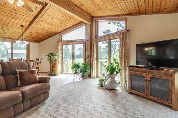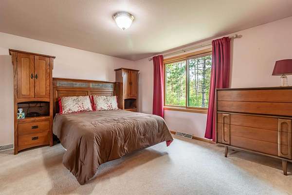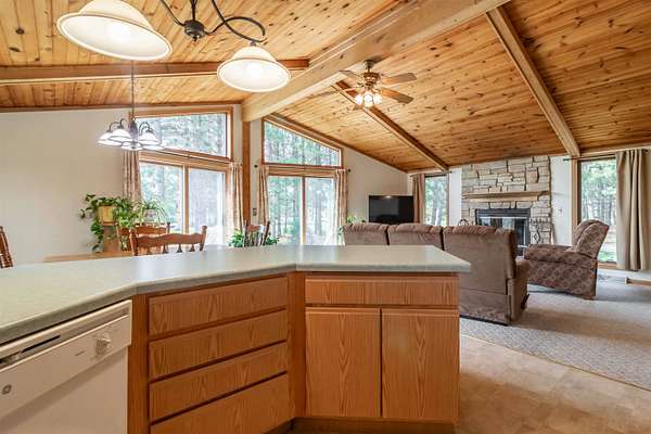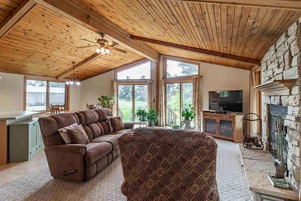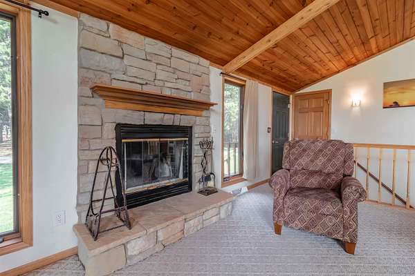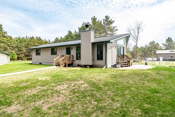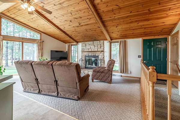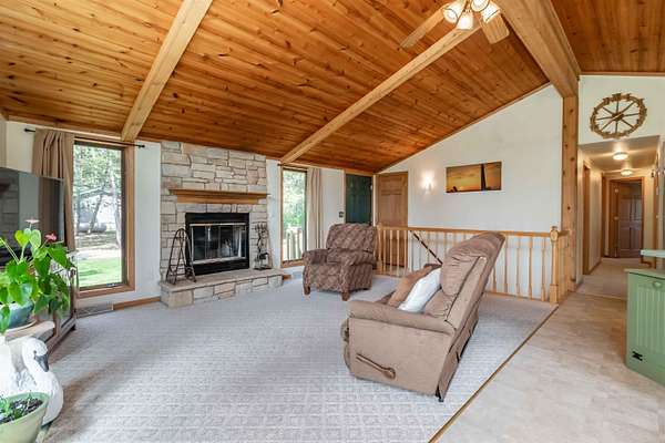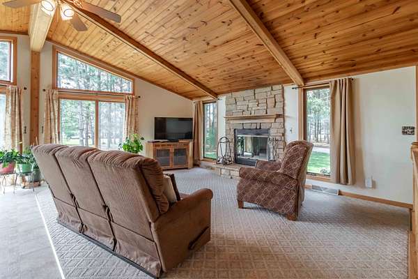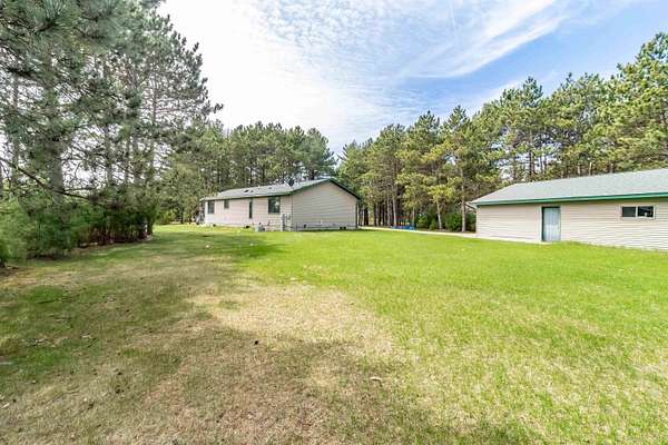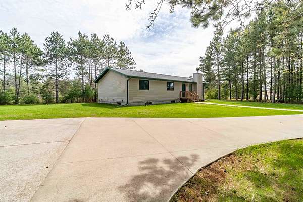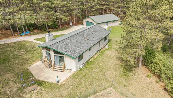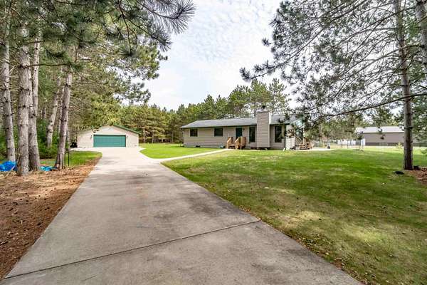 Discover this well maintained ranch home set off the road on a private wooded 2.09 acre lot featuring deeded access to Petenwell Lake. There is a water access lot just across the street, and an exclusive association lakefront park just a short walk away-perfect for boating, fishing, and relaxing by the water. This 2,004 sq ft, 3BR, 3BA home features an open-concept great room with wood-burning fireplace and wood cathedral ceilings, an inviting dining area with sliding doors, and a spacious kitchen with breakfast bar. The main floor includes a primary suite with full bath. The finished lower level offers a large rec room, game area, full bath, and an unfinished space for future expansion. Outdoors features a concrete patio for entertaining and a massive 30x40 4-car (tandem) garage.