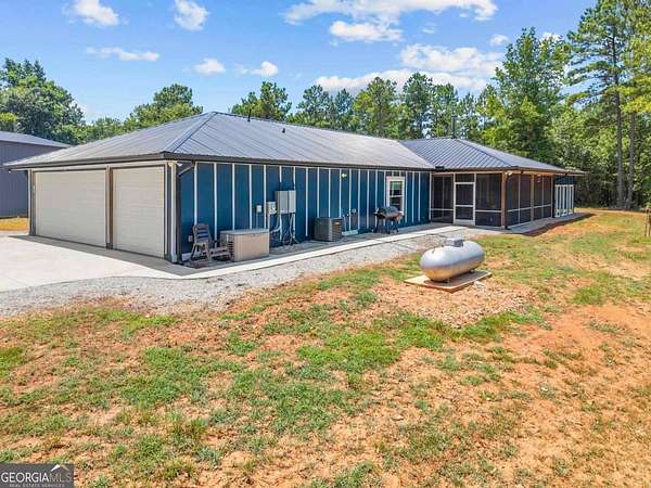 Ideally located just outside of downtown Eatonton and only minutes from Lake Oconee, this exceptional custom-built home sits on 70 plus private acres featuring a beautiful mix of hardwoods and pines. The property is a true outdoor retreat, highlighted by a stocked bass pond complete with a dock, a flowing creek, and Little River frontage along the property line. Designed for both recreation and functionality, the land offers an established trail system throughout, along with multiple food plots-perfect for hunting and wildlife management. A spacious metal building provides ample workshop space and RV storage, adding versatility to the property. Whether you're seeking a private homestead, recreational getaway, or premier hunting property, this unique offering combines natural beauty, convenience, and endless possibilities.