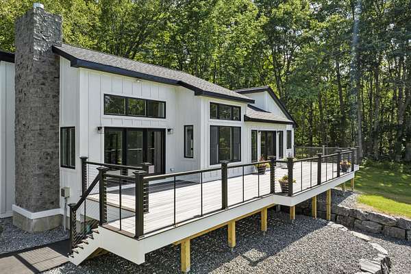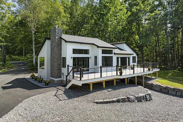 A rare offering on Damariscotta Lake: more than five acres with a fully renovated, contemporary chalet-style home overlooking a tranquil cove. Thoughtfully reimagined from the ground up, this turnkey property blends sleek modern design with a peaceful, natural settingaEUR"perfect for year-round living or an elegant lakeside retreat or family compound. No detail was overlooked during the renovation. The home features a new septic system, upgraded foundation drainage, new water systems, and high-end finishes throughout. Inside, hardwood floors, new appliances, and clean, contemporary design elements combine comfort with functionality. The main level includes a sunlit primary suite with direct access to the deck and a full bath featuring a glass enclosed shower. The walk-out lower level offers two additional roomsaEUR"ideal as bedrooms or office spaceaEUR"a shared full bath, laundry area, relaxed family/game room, and a mechanicals closet that keeps systems neatly tucked away. A newly installed driveway separate from the home leads to a custom-designed shed or bunkhouse near the water's edgeaEUR"ideal as a creative studio, or secure storage for paddleboards, kayaks, and gear. The seller is offering a concession to fund the installation of a proposed new aluminum dock system. The scenic property is situated near the end of a dead end road and includes 400 feet of lake frontage and more than five acres of open fields and woods, bordered by stone walls. Enjoy panoramic views from the spacious deck, where sunsets reflect off the lake and the surrounding landscape teems with wildlife. It's a setting that offers respite, beauty, and a true connection to the outdoors. This is a must-see property. Broker owned.