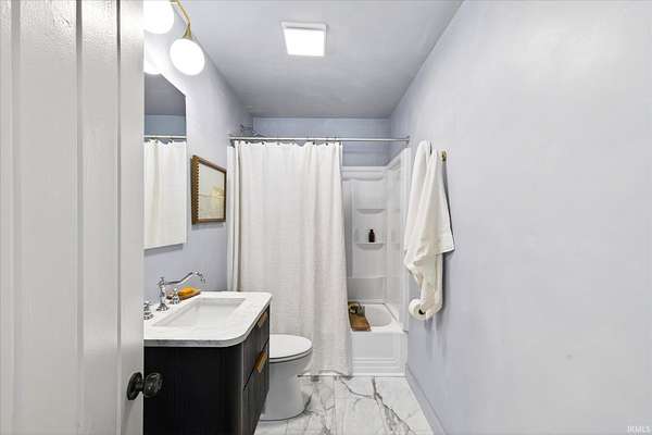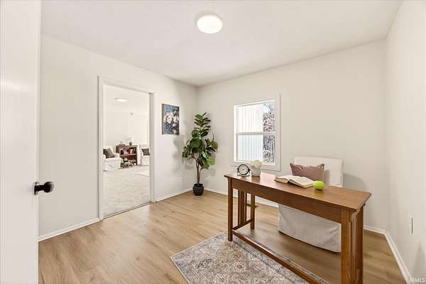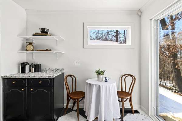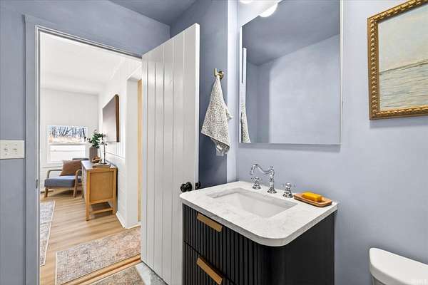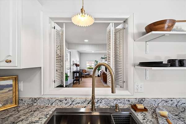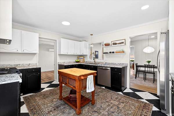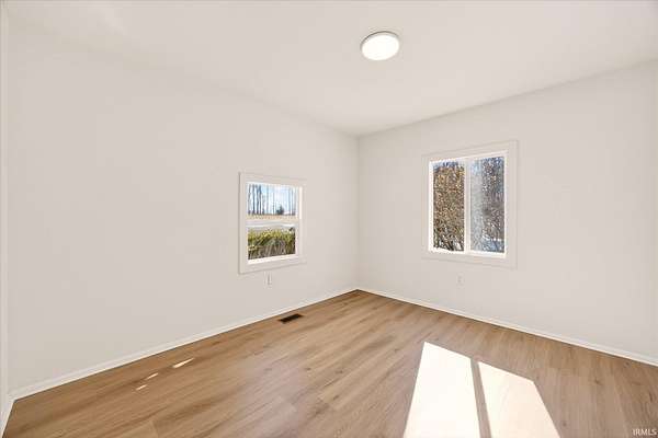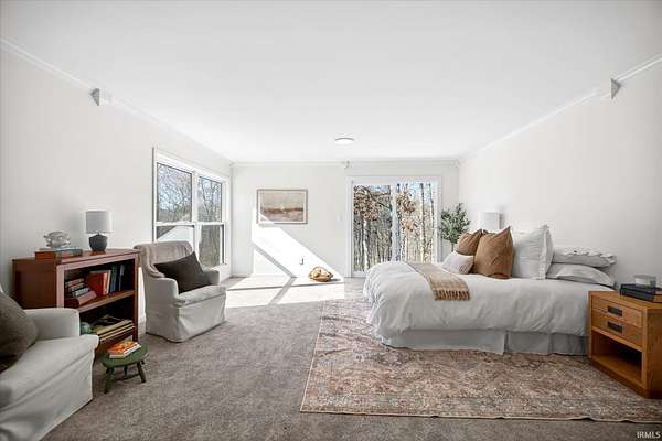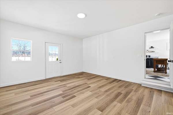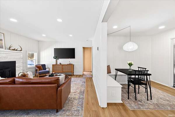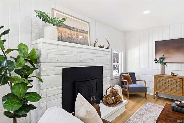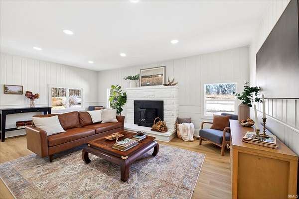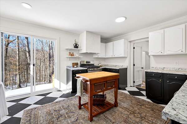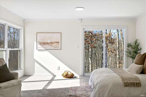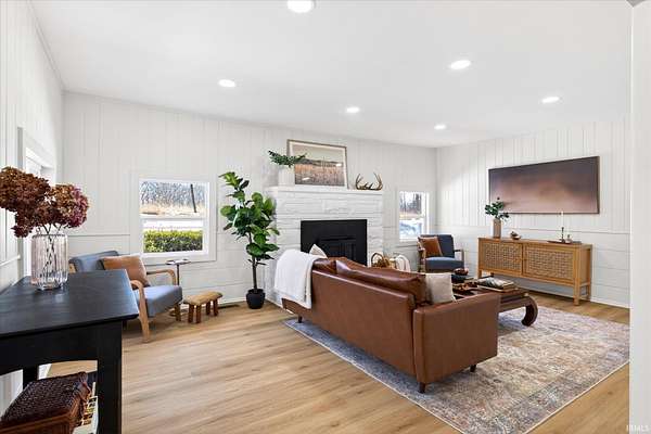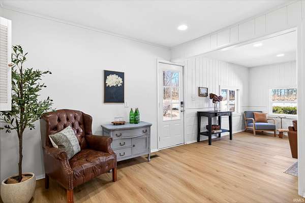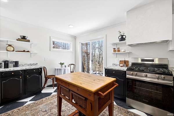 Your ticket to 3.21 acres of solitude. This Leanne Ford-inspired, limestone-kissed cottage balances thoughtful, organic design with your own private Indiana forest. The land is just right--functional yet not exhausting: a sun-soaked front yard for gardening and play, with old-growth trees and a gentle slope for hiking and woodland adventures in the back. This 3-bedroom (including a private flex suite), 1-bathroom ranch features 1,744 SQFT of expansive living. Wide-plank, white-oak-inspired LVP flows throughout. The tuxedo-inspired kitchen features a hand-plastered vent hood, modern checkerboard flooring, a new stainless steel appliance package, refreshed solid wood cabinetry with new countertops, and a Kraus champagne bronze faucet. New dual sliding glass doors in the kitchen and primary bedroom call you to the life outside. Delight in the thoughtful character found throughout, from unique crown molding to the wood-burning stove with a limestone hearth. The dining room features a custom built-in banquette with a Noguchi-inspired paper lantern. The bath is your private oasis; color-drenched in Whispering Blue limewash with a fluted vanity and built-in medicine cabinet. A pop of original linen-textured wallpaper leads to the versatile office or nursery space. The primary bedroom is oversized, featuring a walk-in closet, extra storage, and enough footprint for a generous future en-suite. Tucked behind an antique door, you'll find the massive 3rd bed suite--a versatile flex space with its own separate entrance, laundry, and large closet. Recent mechanicals provide peace of mind alongside a seller-sponsored home warranty. A 2026 extensive overhaul includes a new roof, new rafters in the living room, interior and exterior paint, crawlspace restoration, and updated lighting. A new mini-split and a recently serviced HE HVAC system (2021/22) ensure efficiency. Majority new windows, sliding doors, and a fresh gravel horseshoe driveway complete the exterior, with plenty of space for a future garage. Smart tech includes an Ecobee thermostat and Kwikset keyless entry. Located in the coveted Marlin Elementary district, moments from I-69 and Oliver Winery. Experience a turnkey escape while remaining close to IU Health, Crane, or Indianapolis. A rare find for the buyer who values character, stunning acreage, and quiet. Eligible for VA, FHA, and USDA financing. Listing agent holds ownership interest.