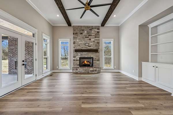 Experience refined country living in this stunning new Simmons Builders home, perfectly placed on 6.67 acres of picturesque Tennessee property complete with a pond. Step inside to find an inviting, open interior showcasing rich hardwood floors, striking cedar beam accents, a cozy gas fireplace framed by a custom stone mantle, and a dream-worthy chef's kitchen designed for both cooking and entertaining. The primary suite offers a private retreat you'll fall in love with, while the thoughtful floor plan also includes a spacious mudroom, an oversized three-car garage, and covered porches at both the front and back of the home for year-round enjoyment. This home offers 5 bedrooms, 5 bathrooms, plus a large upstairs bonus room, ensuring more than enough space for family, guests, or hobbies. Built with luxury and comfort in mind, it's the perfect blend of elegance and functionality. Photos shown include images of a similar build with the same floor plan; new progress photos will be posted as construction continues. Preferred lender offering up to $10,000 toward Buyer's Closing Costs - contact the listing agent for lender information and details. Make this exceptional property your forever home today!