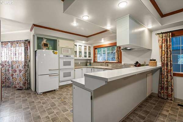 - Builtin Oven, Builtin Range, Butlers Pantry, Cooktop, Double Oven, Free Standing Refrigerator, Microwave, Solid Surface Countertop
