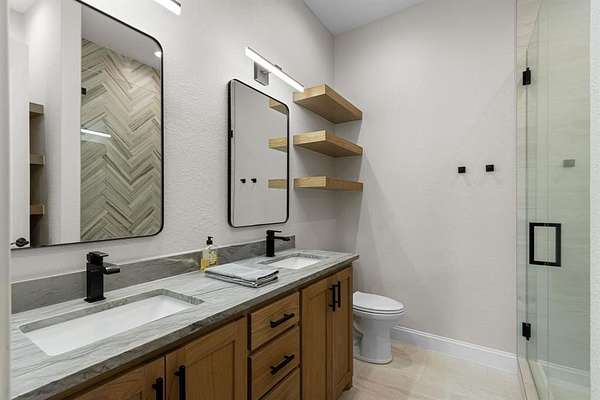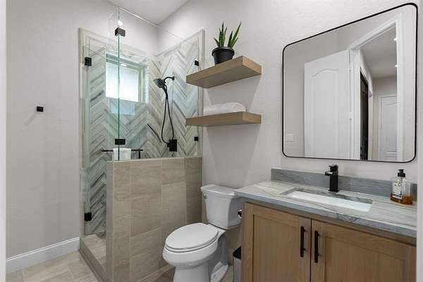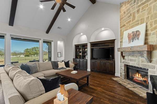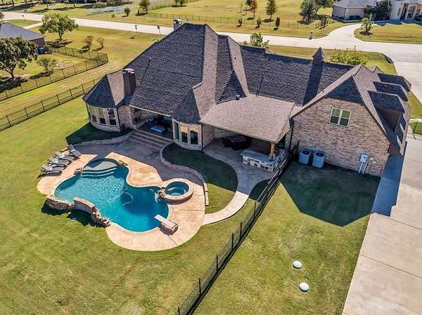 A home designed to be lived in, loved, and shared. This stunning Saddlebrook Estates home was completely remodeled in 2022 and is ready for you to move in. Open the door to this inviting residence that offers warm, open living spaces and flexible upstairs area ideal for a game room, studio, or guest retreat. The chef's kitchen features a NEW Sub-Zero refrigerator, GE Monogram 48" 6 burner range with griddle, Bosch dishwasher , Reverse-osmosis water system, and a KitchenAid ice maker which uses the RO system. Hand-scraped wood floors, marble flooring is in the kitchen, bathrooms and laundry room. All countertops are leathered quartzite. The primary bedroom, primary bath, living room and kitchen have Hunter Douglas remote controlled room darkening shades and the secondary bedrooms have Pottery Barn custom room darkening drapes which will convey. The primary bedroom offers a large walk in closet that connects with the laundry room. Other updates include Champion windows, Class 4 roof shingles with ridge vents, HVAC, two tankless water heaters, and LED lighting throughout. Enjoy backyard living with a 9 foot deep, saltwater diving pool, catch-a-kid net, two covered seating areas, one with a masonry fireplace, and the other with an outdoor kitchen. Sonos speakers are wired for both inside and outside listening of your favorite music. Pet-friendly wrought-iron fencing has been included to keep your animals safe. Full irrigation is included in the front acre of the property while the aerobic sprinklers are located in the back acre. The additional 1,200 sq ft shop is climate-controlled with a bathroom as well as washer and dryer hookups, and epoxy flooring. This space is perfect for an extra vehicle or boat parking, work-out area, storage, or hang out space. This is a home where luxury feels comfortable and spaces feel intentional. Come see for yourself the love and care that has been put into every inch of this home.