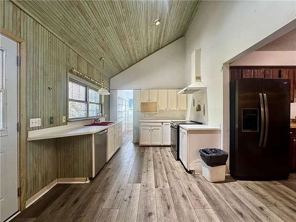 Step inside to find a welcoming layout with new luxury vinyl plank flooring downstairs and an expansive family room featuring a vaulted ceiling, stone fireplace, and plenty of natural light. The kitchen has been thoughtfully extended to accommodate the needs of the serious home cook or entertainer and includes a walk-in pantry for all your storage needs. The spacious breakfast room is a true standout with a built-in China cabinet, large imported stained-glass windows, and a gorgeous beadboard ceiling that adds charm and character. Outside, the possibilities are endless. Bring your horses and livestock--this property includes a barn with multiple bays, room to roam, and plenty of space to create the country lifestyle you've been dreaming of. With its spacious interior, unique features, and expansive acreage, this Wilmer home offers an exceptional opportunity to enjoy serene rural living without sacrificing convenience.