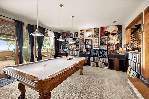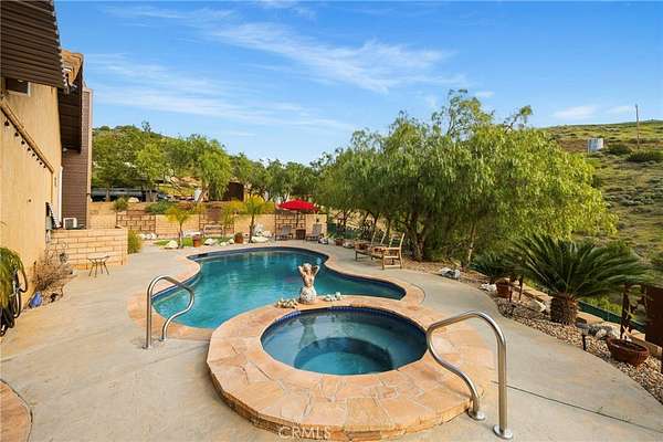 Spacious single-story 3,000 sq ft view home in beautiful Agua Dulce, CA, situated on over 6 private acres, offering tranquility, open space, and scenic surroundings. This home features a functional 3 bedroom and 3 full bathroom open layout with generous living areas filled with natural light, a gourmet kitchen equipped with Viking appliances, and ample storage. A dedicated game room provides flexible space for recreation or entertaining, while well-sized bedrooms offer comfort and versatility for family or guests. Cozy up by the fireplace or pellet stove for added warmth and ambiance. Recent updates include a newer roof, newer HVAC system including 3 main rooms served by a new mini split to offset cooling costs, and septic system and upgraded bathrooms for added peace of mind. The entertainer’s backyard is designed for relaxation and gatherings, featuring an in-ground pool and spa, expansive grounds, and breathtaking views. A large patio with fireplace showcasing the amazing sunset views. The property also includes a 3-car garage with ample RV and boat parking, perfect for hobbyists or outdoor enthusiasts. Conveniently located with easy access to shopping, dining, and schools, this home offers the ideal combination of privacy, luxury, and functionality. A rare opportunity to own a view property with acreage, resort-style amenities, and everything needed for comfortable, elegant living. Come for a visit. Stay for a lifetime. Welcome Home!