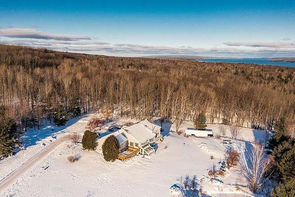 Welcome to "Country in the City," a rare Bayfield retreat where privacy and walkability coexist. Set on 10 serene acres overlooking Lake Superior and Madeline Island, this 4-bedroom, 4-bath home offers nearly 6,000 sq ft of refined living space surrounded by gardens, private trails, and a tranquil pond. A 1,150-sq-ft apartment provides flexible options for guests, multi-generational living, or continued vacation rental income. Perfectly positioned near Bayfield's orchards, wineries, and the scenic Fruit Loop, this exceptional property offers sweeping water views and peaceful seclusion--all within walking distance to the shops, restaurants, and harbor of downtown Bayfield.
