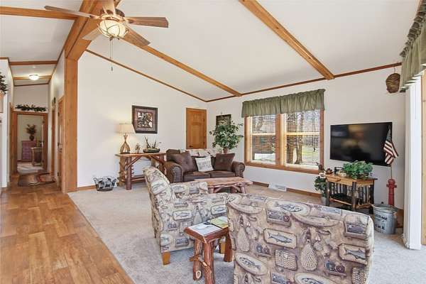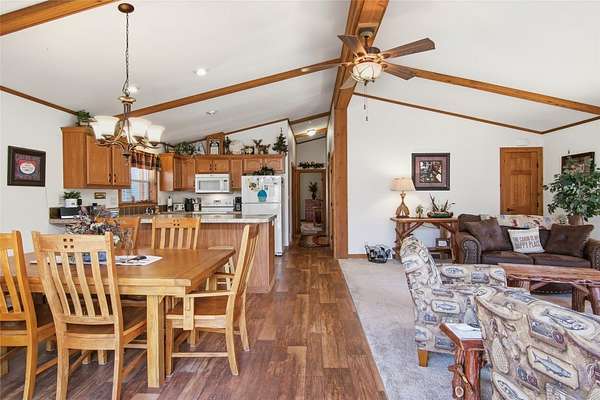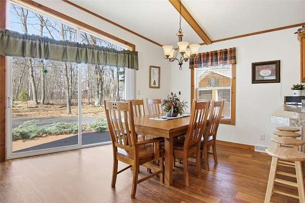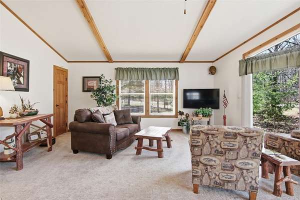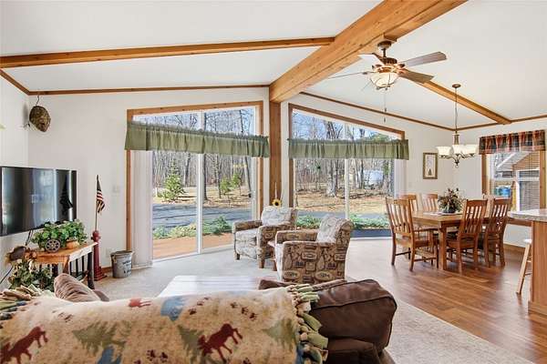 Welcome to your Northwoods retreat on the highly sought-after Chippewa Flowage, offering 1/3 shared access to one of Wisconsin's premier lake systems. This well-maintained 3-bedroom, 3-bath home sits on a beautifully wooded lot, providing privacy while still delivering convenient access to the water for boating, fishing, and year-round recreation. Inside, the home features a warm and inviting layout with an open-concept living area, vaulted ceilings, and large windows that bring in natural light and capture the surrounding scenery. The kitchen offers ample cabinetry and workspace, flowing seamlessly into the dining and living areas, making it ideal for entertaining. The main level includes comfortable bedrooms and a well-appointed primary suite, while the finished lower level provides additional living space perfect for guests, a rec room, or a second gathering area. Outside, you'll find a spacious detached garage, paved driveway, and low-maintenance exterior, along with a peaceful setting surrounded by mature trees. Whether you're looking for a full-time residence or a weekend getaway, this property combines comfort, functionality, and access to the Chippewa Flowage lifestyle.