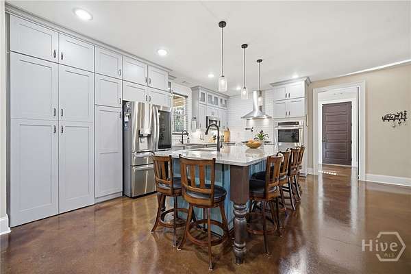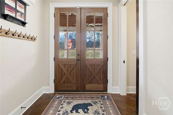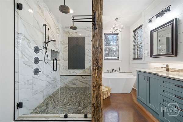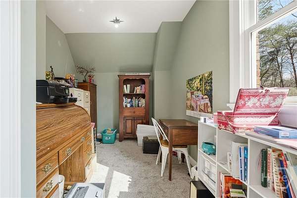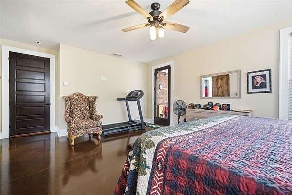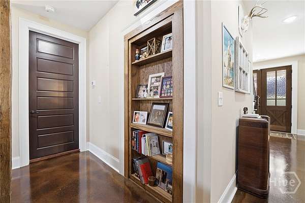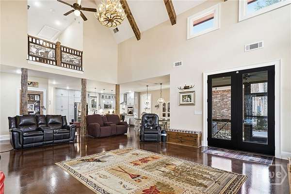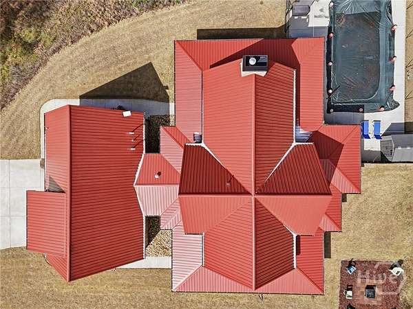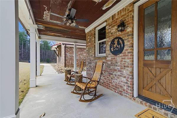Tucked away in the rolling countryside of Ball Ground in Cherokee County-an area celebrated for its blend of small-town charm, scenic landscapes, and convenient access to metro Atlanta-this spectacular custom-built, all-brick estate offers an exceptional retreat on 14.64 private acres. Designed with both style and substance in mind, the home showcases polished concrete floors, soaring ceilings, and striking custom light fixtures, while double-paned windows frame peaceful, panoramic views from nearly every room. The open-concept layout is anchored by an impressive vaulted great room with exposed beams and a commanding stone fireplace with an oversized hearth. The gourmet kitchen is equally notable, featuring floor-to-ceiling custom cabinetry, a generous island bar, gleaming quartzite countertops, and a professional-grade appliance package. Custom designed, through the cabinets is a hidden pantry full of shelving. A spacious dining area extends just off the kitchen, easily accommodating gatherings of six or more, while a thoughtfully designed mudroom/laundry space with a folding center enhances everyday functionality. Speaking of functionality, an additional secret hideaway can be found just opposite the unassuming built-in shelves and connects to the owner's suite creating a perfect storage space. The primary suite serves as a private sanctuary with direct access to its own porch and a sliding barn door opening to a spa-inspired bath featuring dual custom vanities, tile flooring, and a frameless shower with dual rain heads. It's evident no expense was spared. Additionally, you can find a secondary bedroom suite accompanied by a private full bath, perfect for guests or in-laws. Upstairs two additional bedrooms and a well-appointed full bath provide comfortable accommodations. Efficiency meets durability with three HVAC heat pump systems, a gas instant hot water heater, and a long-lasting metal roof. Outdoor living is equally captivating, offering a classic rocking chair front porch, a wrap-around screened porch with sweeping territorial views, and a saltwater pool with an expansive patio-creating the ultimate setting for both quiet relaxation and entertaining. The property also features an oversized shop ideal for tractors, lawn equipment, ATVs, and more, along with a dedicated garden area ready for cultivation. With an underground spring-fed creek, abundant wildlife and frequent deer sightings, this spectacular setting truly is a hunter's paradise. A rare blend of privacy, acreage, and custom craftsmanship, this property delivers a refined Southern lifestyle without sacrificing quality, amenities or convenience.