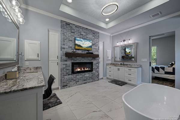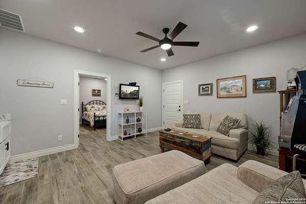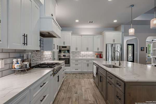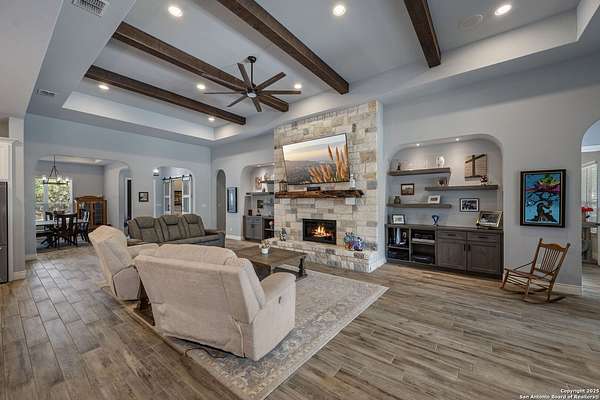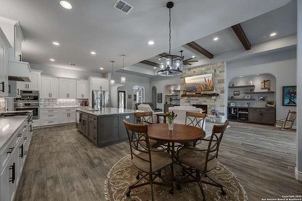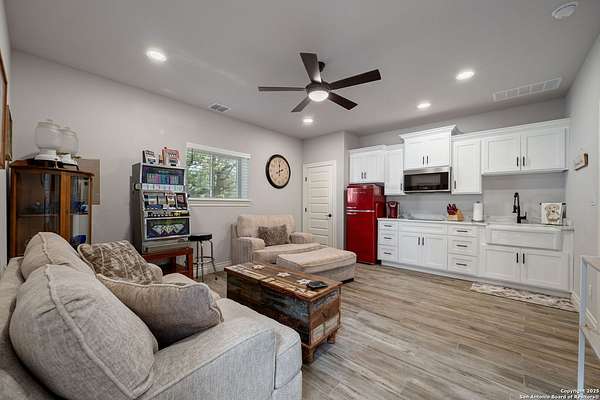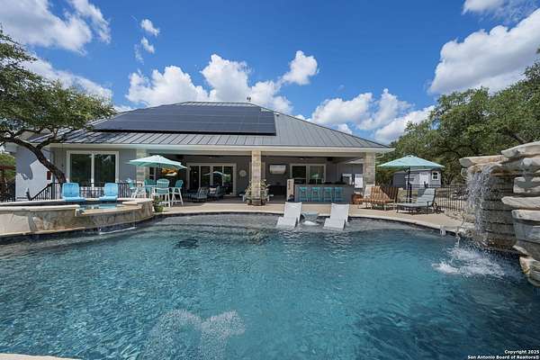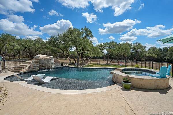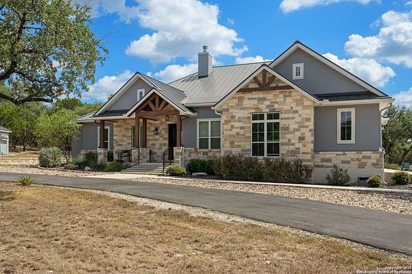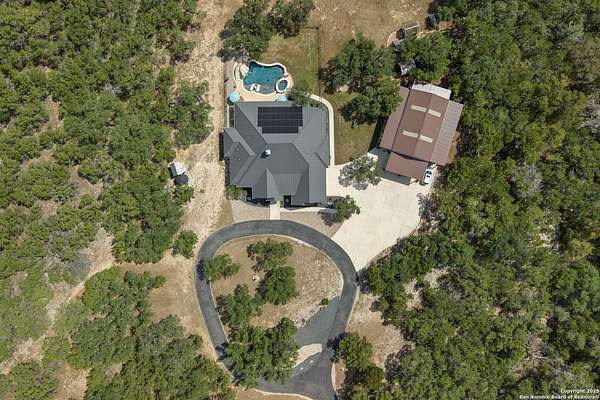 Luxury living meets adventure with this beautiful home situated on nearly 18 fully fenced and gated park-like acres with its very own private cave to explore! The 3 bed/3.5 bath main home offers everything for sophisticated living: a chef's kitchen, designated office space, formal dining area, bar area, sun room, primary bathroom spa-like retreat, and a dream pantry/ laundry room combo! Outside you will find a sparkling pool with a waterfall and slide, an outdoor kitchen, a beer tap, motorized patio screens, chicken coop, garden, storage building, RV hookup, solar panels & well. If that isn't enough, there is also a shop with a tool shed, covered awnings, storage upstairs, plenty of room for projects or game tables and a 1 bed/1 bath apartment downstairs for your extended family or guests! 864 Coyote Ridge Road is where everyday living feels like a getaway. Don't miss out on this once in a lifetime opportunity to go from poolside relaxation to private cave exploration all from the privacy of your own slice of the Texas Hill Country! Schedule a private showing of this amazing estate today!