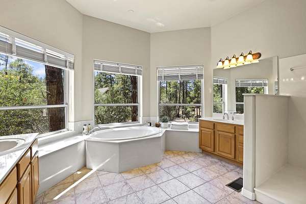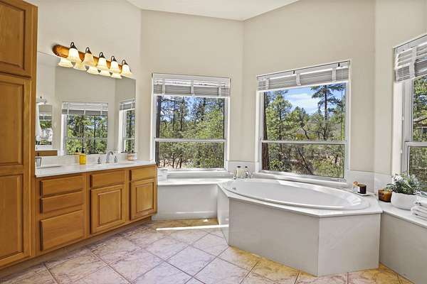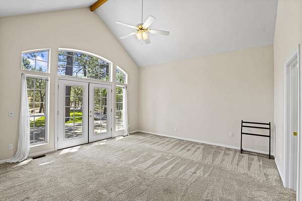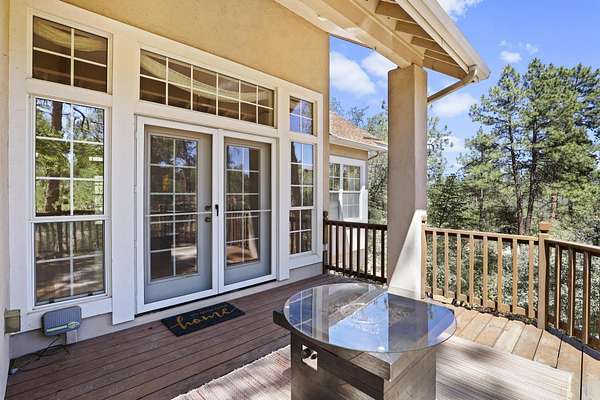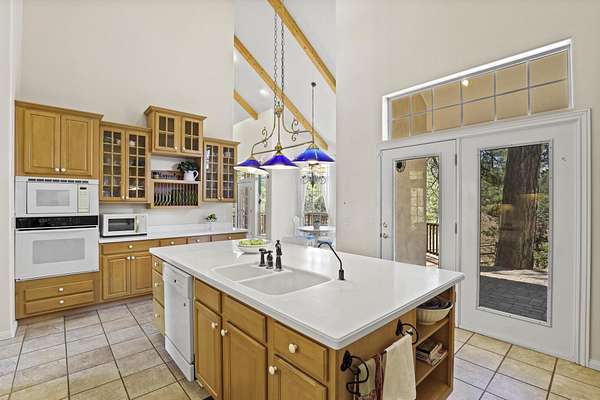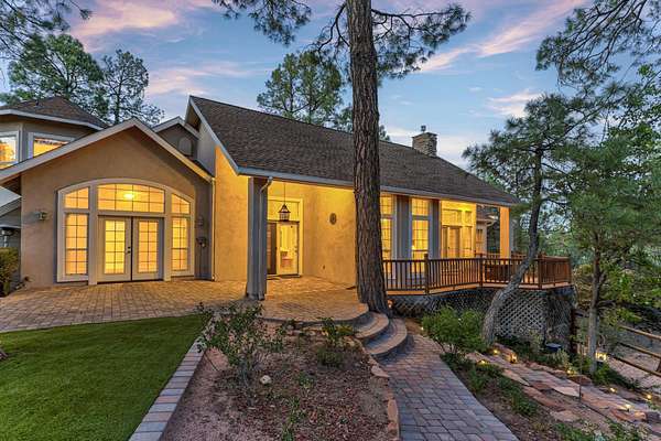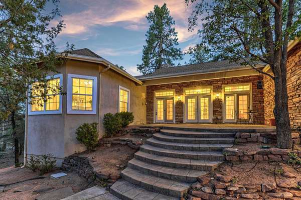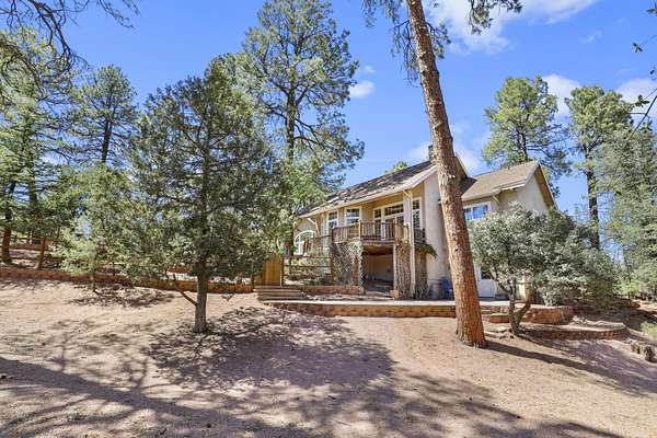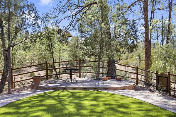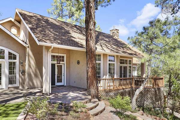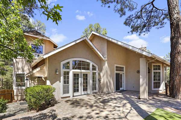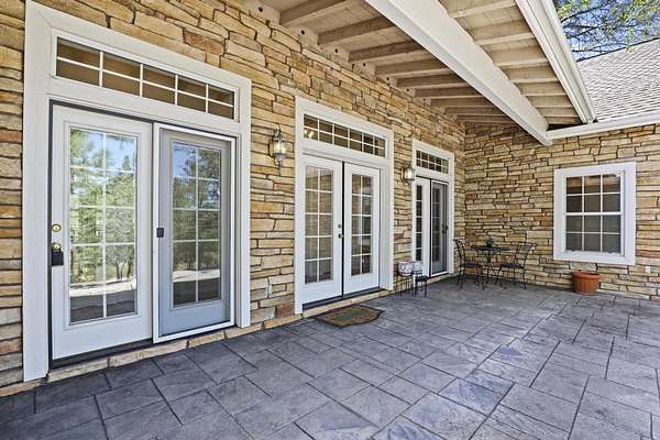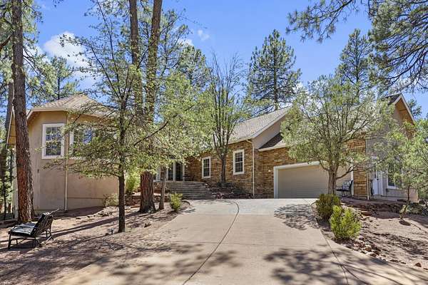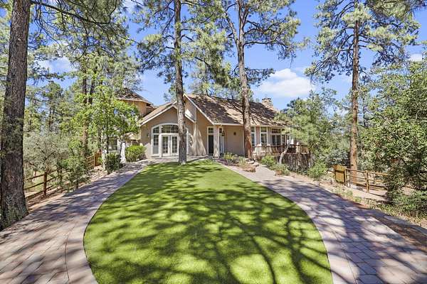 Beautiful & spacious home on 1.6 private acres surrounded by mature Ponderosa pines. Located in prestigious The Knolls community, this property offers views, privacy, and a serene park-like setting. This 4 bedroom 2.5 bath home offers primarily single-level living in nearly 3000 sq. ft. A flexible upstairs bonus room is exceptionally quiet with lots of windows. It offers a peaceful retreat - perfect as a home office, reading nook or creative space. The front steps lead you to the entry and an atrium foyer of French Doors with direct access to the Great Room. The Great Room features vaulted and beamed ceilings, a beautiful stacked- stone gas fireplace and a wall of windows and French Doors leading to the covered deck. The huge kitchen is a dream for chefs and entertainers alike, featuring an island with sink, RO system, extensive counter space, beautiful cabinetry...and wait till you see all the storage!!! That's just a start....just off the kitchen is a sunny dining/breakfast area. Extend the table or stay cozy. The primary suite is a true retreat with a massive walk-in closet, wrap-around shower + soaking tub and dual vanities. French Doors open right out to the patio and garden. The home also features a spacious laundry room with utility sink and direct garage access. The oversized garage offers workshop potential, lots of storage and room for your boat or toys. Additionally, there is a large lower-level storage/hobby/workshop area complete with its own utility sink. This is easily accessible from a walkway from the upper yard and house. Outdoor living has been recently upgraded with paver patios and year-round green turf, providing low-maintenance, beauty and space to relax or entertain. Did we mention there is a fenced pet-friendly yard!! Don't miss this unique, one-of-a-kind property offering versatile living on a gorgeous lot - where comfort meets practicality in a peaceful setting.