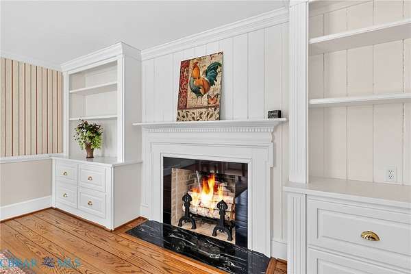 - Bedroom On Main Level, Bookcases, Breakfast Area, Built In Features, Cable TV, Ceiling Fans, Double Vanity, Eat In Kitchen, Fireplace, Main Level Primary, Separate Formal Dining Room