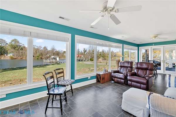 Welcome to this beautifully maintained, all-brick waterfront residence offering the perfect blend of classic construction, spacious living, & private water access. This impressive 2-story home features 4 bedrooms/2.5 bathrooms in 4,056 square feet of living space. Designed for both comfort & entertaining, the interior showcases hardwood floors, custom built-ins, multiple fireplaces, & expansive living & dining areas. The home includes 1st floor primary bedroom, 2nd bedroom providing flexibility for guests or multi-generational living. The kitchen features an induction range, large island that seats 4, table with waterview, bar sink & lots of storage. The dining spaces are ideal for gatherings; complemented by a sunroom, screened porch, & scenic waterfront sunset views. Outside, the property truly shines. Situated on approximately 2 ACs along Cockrell Creek, the home offers private waterfront access with a pier/dock & boat lift, making it perfect for boating, fishing, and crabbing right from your backyard. Large detached garage 8 car/workshop & 1/2 BA w/ ample space for multiple vehicles, boats. Beautifully landscaped grounds, including gardens. Private setting w/ deep-water access (approx. 5 ft) dock w/covered sitting area to enjoy the view. Whether you're looking for a full-time residence or a weekend waterfront retreat, this property delivers space, privacy, and true Chesapeake Bay lifestyle appeal.