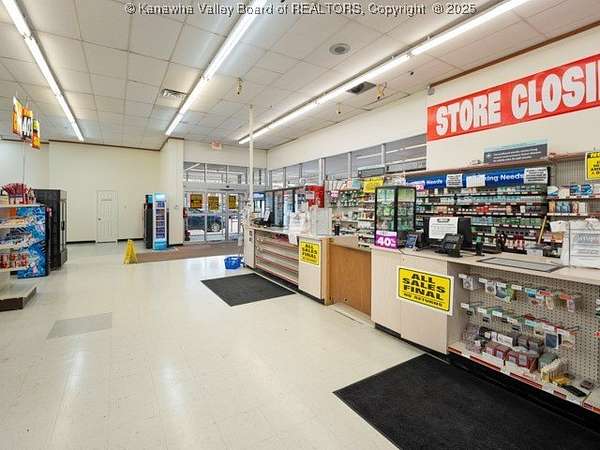Loading dock, Fruth Pharmacy to close by 12/31/25 from Corridor G, the main shopping area to Charleston. Well-maintained building.