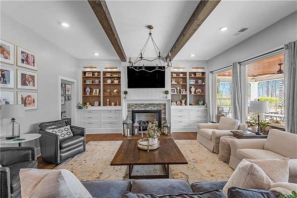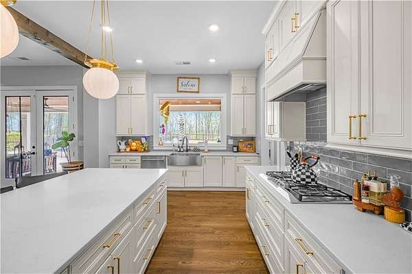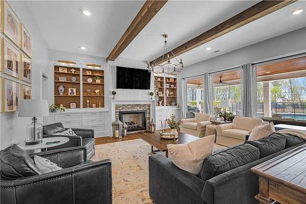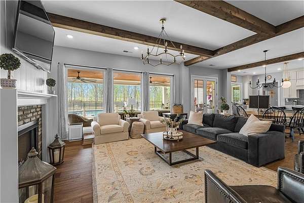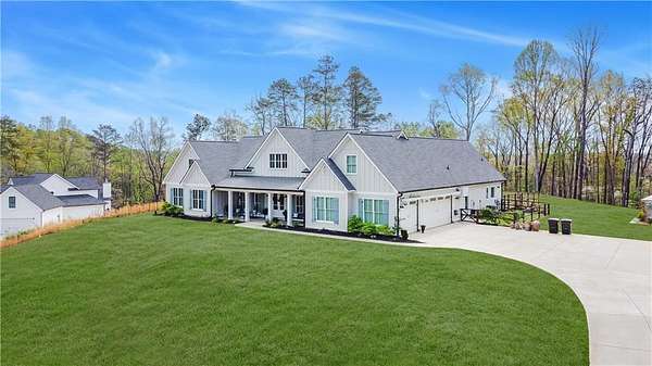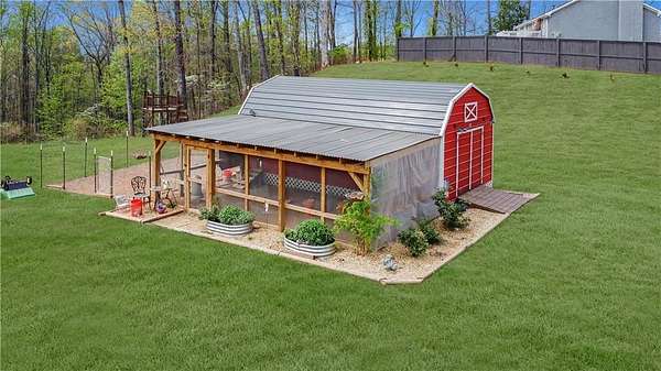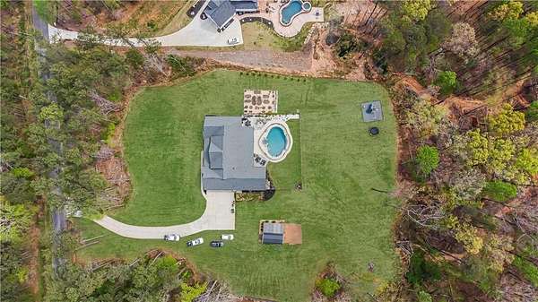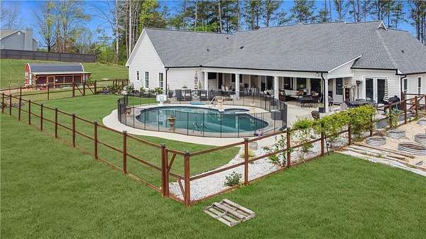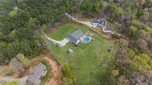 Luxury Private Modern Farmhouse Estate on Nearly 5 Acres | Pool, Homestead, No HOA! Experience the perfect blend of luxury, privacy, and lifestyle in this exceptional estate nestled on nearly five acres-with no HOA restrictions. Designed for both elevated living and everyday comfort, this property offers space to entertain, unwind, and live freely. The thoughtfully designed floor plan features 6 bedrooms, 4 full baths, and 2 half baths, including a convenient dedicated pool bath. Interior highlights include custom cabinetry, quartz countertops throughout, full tile showers, exposed beam ceilings, walk-in pantry, separate office, new Kitchen Aid appliances, and a stunning brick gas fireplace. Step outside to your resort-style heated saltwater pool and spa, complemented by a covered back porch stubbed for propane-perfect for a future outdoor kitchen and year-round entertaining. Expansive windows frame breathtaking views of your private oasis, bringing the outdoors in. For those seeking a homesteading lifestyle, the property is fully equipped with a 20-bed raised garden, mature fruit trees, abundant blackberry and blueberry bushes, and a fully enclosed chicken coop-complete with 15 egg-laying hens included. Enjoy true main-level living, plus a private bonus suite above the garage, ideal for guests, in-laws, or teens. Animal lovers will appreciate the separate fenced dog run conveniently located off the laundry room, featuring a built-in dog door for easy indoor-outdoor access. The deep 3-car garage offers incredible versatility-currently outfitted with a gym and golf simulator, while still accommodating a full-size SUV and truck. Additional features include a utility sink, workspace, and garden prep area. Located minutes from top-rated schools, major highways, shopping, and Allatoona Lake, this home offers both seclusion and convenience. A rare opportunity to own a private luxury retreat with endless possibilities.