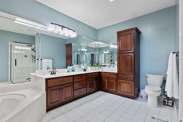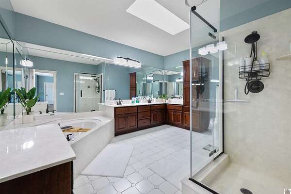 - Bathtub, Ceiling Fan(s), Ceilings 9+ Feet, Circuit Breakers, Closet Light(s), Double Vanity, Garage Door Opener, Separate Shower, Skylight, Tiled Shower, Tray/Vaulted Ceiling, Walk-In Closet, Washer/Dryer Hookup