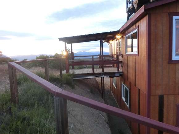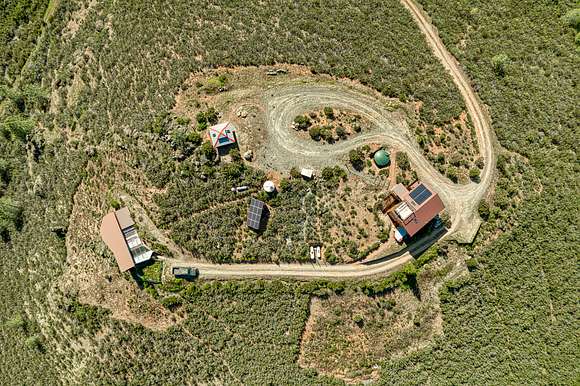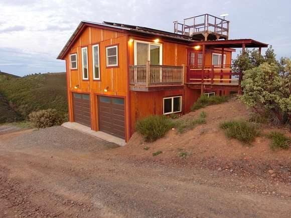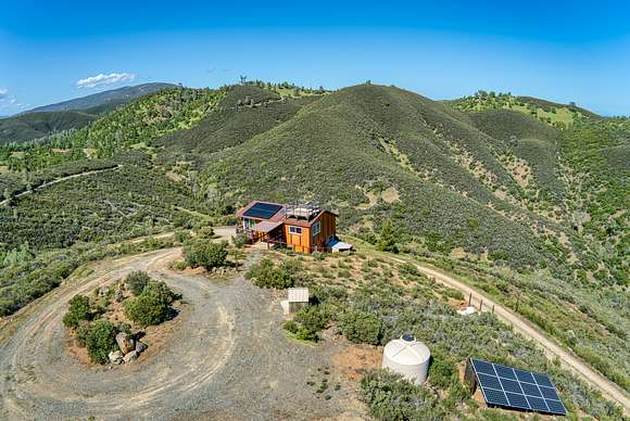 Off-grid 700 square foot home with open floor plan, well-built, with equal sized garage and laundry area plus large refrigerator and work area downstairs not included in square footage. Propane in multiple locations for heat, cooking and clothes drying, plumbing both downstairs (in the garage) and upstairs for the kitchen and bathroom, plus several hose outlets outdoors, including locations away from the home, 120/240v electric, 20 solar panels in 2 locations (one array gets sun earlier, one gets mid- to late-day sun), forklift battery to store power for overnight and days with less sun, backup gasoline/propane generator. Lots of electrical outlets and lighting fixtures, including outdoors.
