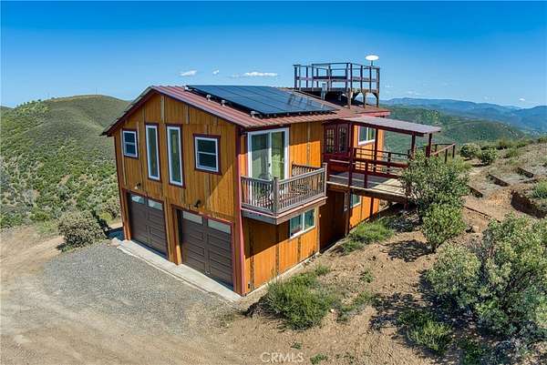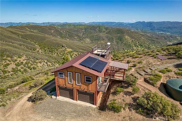 Discover tranquil off-grid living on a sprawling 20-acre retreat that combines modern sustainability with rustic charm. This thoughtfully designed property features a cozy 700-square-foot main house complemented by an upgraded Park Model Trailer, offering flexible living arrangements for your lifestyle needs. The property's self-sufficient infrastructure includes a comprehensive solar power system with forklift battery storage for reliable overnight power, plus a dual-fuel backup generator for peace of mind. Water management is expertly handled with a 5,000-gallon tank near the main house and a 2,000-gallon tank by the trailer, while a well and septic system ensure complete independence. Storage and workspace abound with a 700-square-foot garage and an impressive 18x40 steel building, perfect for projects, vehicles, or equipment. The Park Model Trailer has been enhanced with a protective roof extension and features an inviting wraparound deck, ideal for taking in the stunning natural views that surround the property. Privacy seekers will appreciate the secluded setting that doesn't compromise on security. The one-bedroom, two-bathroom main house provides comfortable living spaces while maintaining a modest footprint. Whether you're seeking a weekend sanctuary or a permanent escape from city life, this property offers the perfect blend of solitude and self-sustainability. Experience the freedom of off-grid living while enjoying modern amenities and the beauty of California's natural landscape in this unique property that truly must be seen to be appreciated.