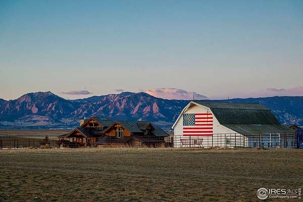Step into a world of ranching sophistication in Boulder, Colorado! Built in 2015, this expansive 5,000 sf masterpiece redefines executive farming and ranching. Four spacious bedrooms and 5 luxurious bathrooms. Wet bars both inside and outside are designed for modern comfort and effortless entertaining in a rustic setting with impressively formidable wood beams and other extensive timber accents. Cook like a pro in the stunning chef's kitchen, outfitted with top-of-the-line Wolf and Sub-Zero appliances and sleek knotty alder cabinetry that perfectly blends executive ranch style and function. The soaring great room, anchored by a towering stone wood-burning fireplace, flows effortlessly through the massive wall of windows and glass doors overlooking the wraparound cedar wood deck and breathtaking views of the Flatirons & Long's Peak. The master bedroom is pure indulgence, featuring its own cozy fireplace and executive office with panoramic unmatched mountain views that will take your breath away every morning. Set on a 6-acre horse property with a manager's home on an adjoining 5 acres, the property is surrounded by open space with jaw-dropping views of the back range. The stars and stripes are painted on a historic barn that heralds national pride. Smart home wiring, built-in speakers to set the mood, plus a 3-car garage. Top all this off with a 1500 sf heated shop that includes multiple 220 outlets for welding and other farm and ranch essentials, professionally designed and well-tested heavy steel sorting corrals and gates, extensive hay storage, and other outbuilding accessories. Geothermal heat pump with radiant in floor heat and back up natural gas forced air furnace. Solar systems augment the demand in the main residence and the shop. This is a rare opportunity to own one of Boulder's finest homes that has been painstakingly crafted with a passion designed for both comfort and real ranching uses and built to last for generations. 24 Hour Notice to Show.
