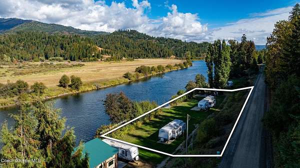 Experience the riverfront life with this exceptional recreational lot on the St. Joe River in St. Maries. Boasting 250 feet of boatable frontage and a convenient dock, this property is perfect for boating and watersports enthusiasts. The spacious lot features multiple RV parking spots, each equipped with 100 AMP electrical service, along with a 200 AMP electrical hookup for the entire property. Relax and entertain in the charming 20' x 14' gazebo, ideal for gatherings or peaceful evenings by the water. Located just 25 minutes from the amenities of St. Maries, this property offers both tranquility and convenience. Don't miss this rare opportunity to own your riverside retreat! Seller financing available!