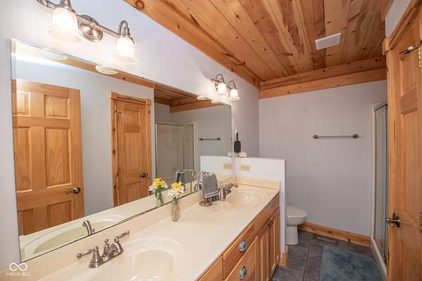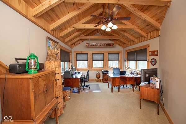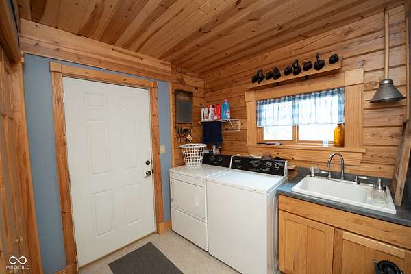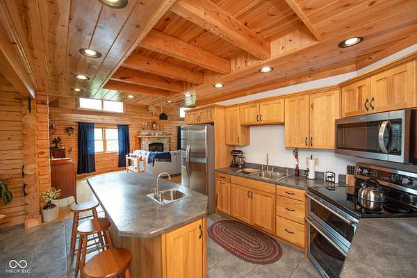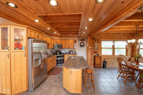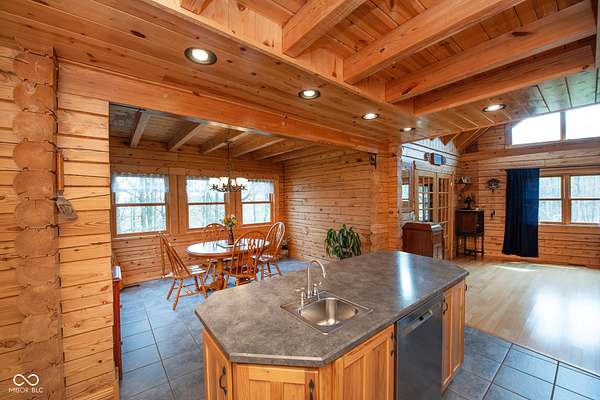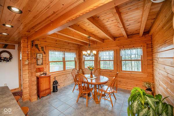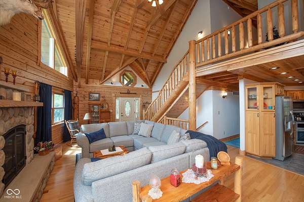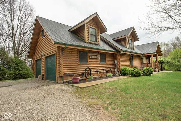 Set on approximately 2.7 acres of serene, tree-lined privacy, this exceptional property features a custom Tennessee-timber log home paired with a 25x30pole barn-truly a one-of-a-kind offering. Step through the front door and you're welcomed by soaring vaulted ceilings that immediately showcase the home's craftsmanship. The grand living room is anchored by a gas fireplace and rich hardwood floors, creating a warm and inviting gathering space. The kitchen features solid hickory cabinetry, stainless steel appliances, and opens to a charming dining area surrounded by windows that frame peaceful views of nature and wildlife. Just off the kitchen, a spacious deck provides the perfect spot for morning coffee, birdwatching, or entertaining guests. This home offers 4 bedrooms and 2.5 bathrooms, including a first floor owner's suite with a walk-in closet. The main floor also includes a convenient laundry room and additional storage just off the finished 2-car garage. Structural highlights include steel I-beams and 200-amp service. The unfinished walk-out basement, with 9-foot ceilings and plumbing already in place for a future bathroom, offers the potential to expand the home to more than 4,300 total finished square feet. Outdoors, the property continues to impress with a U-shaped driveway, firepit area ready for gatherings, and the additional 25x30 pole barn for storage, hobbies, or equipment. More acreage may be available for purchase. A rare blend of privacy, craftsmanship, and potential-this property is ready to welcome its next owner.